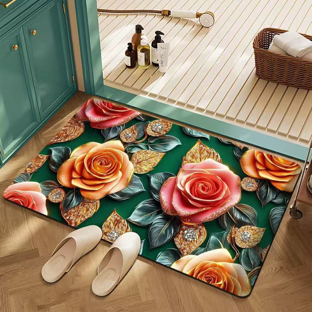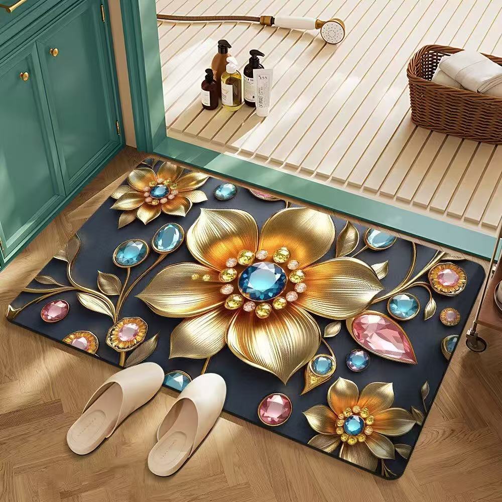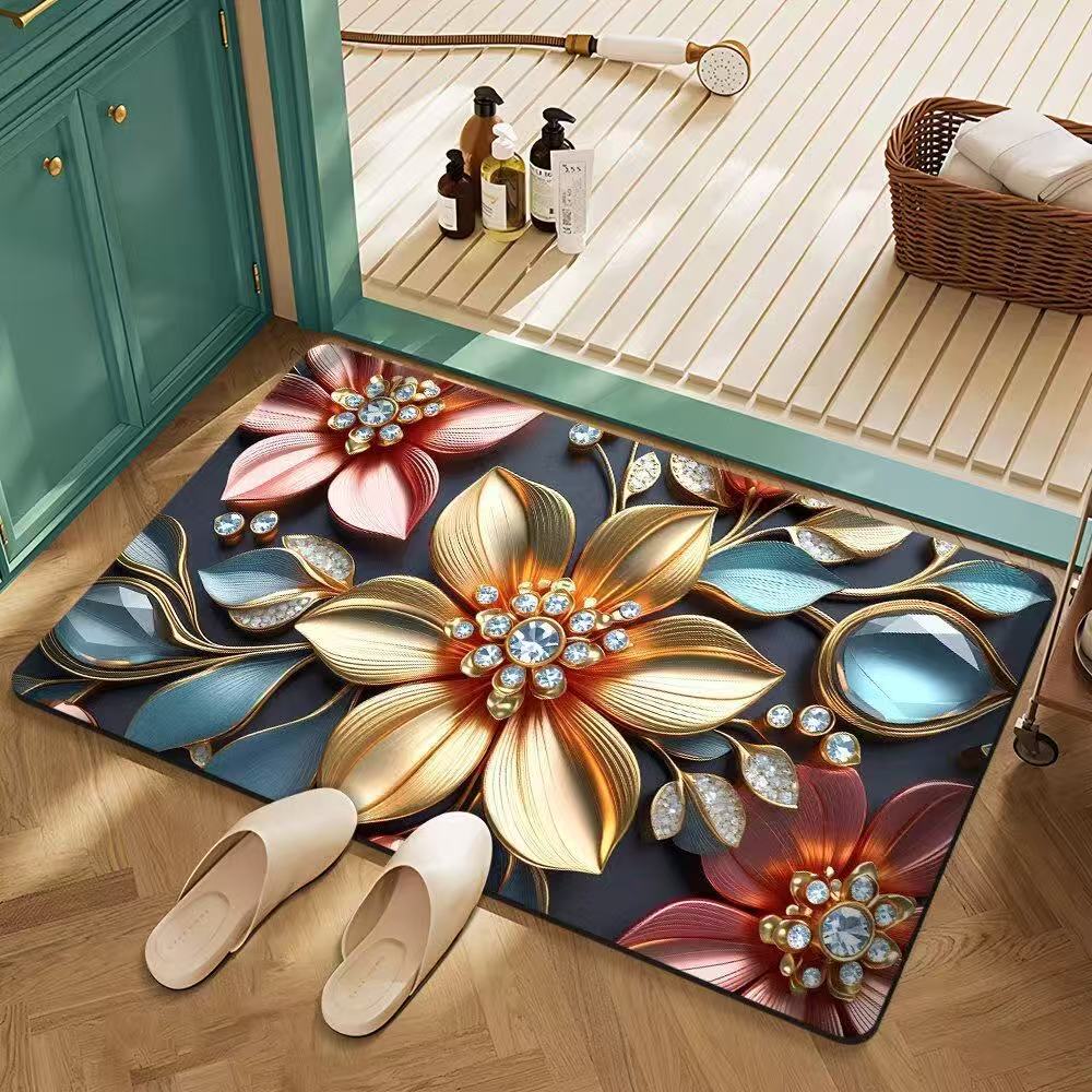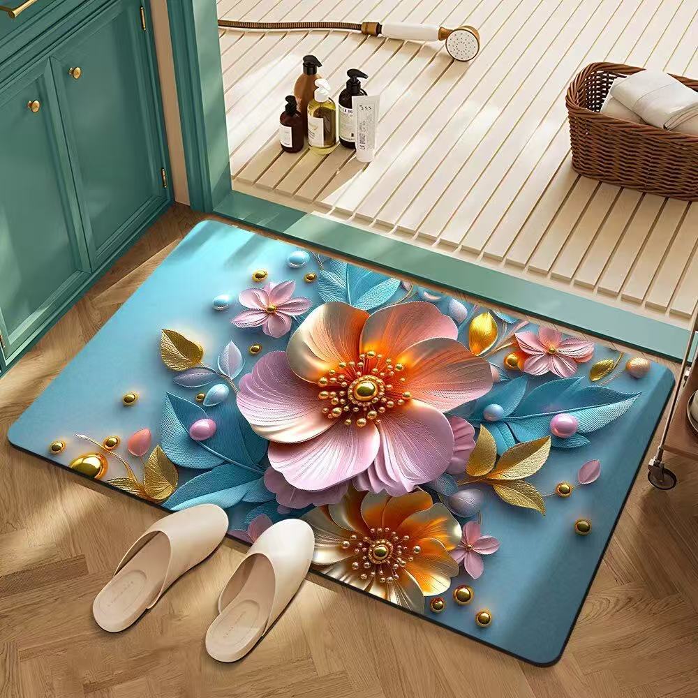 꽃 규조토 진흙 바닥 매트 욕실 흡수성 속건성 미끄럼 방지 욕실 문 발 매트 얼룩 방지 미끄럼 방지 발 매트
