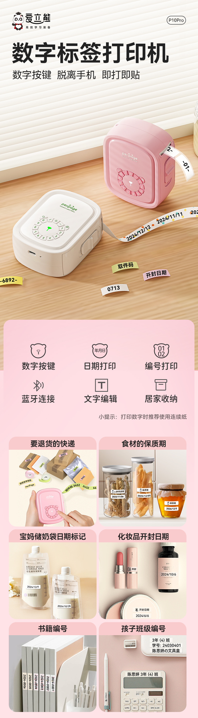 에릭베어 P10pro 디지털 라벨 프린터 휴대폰 블루투스 연결 가정용 소형 열전사 라벨 프린터