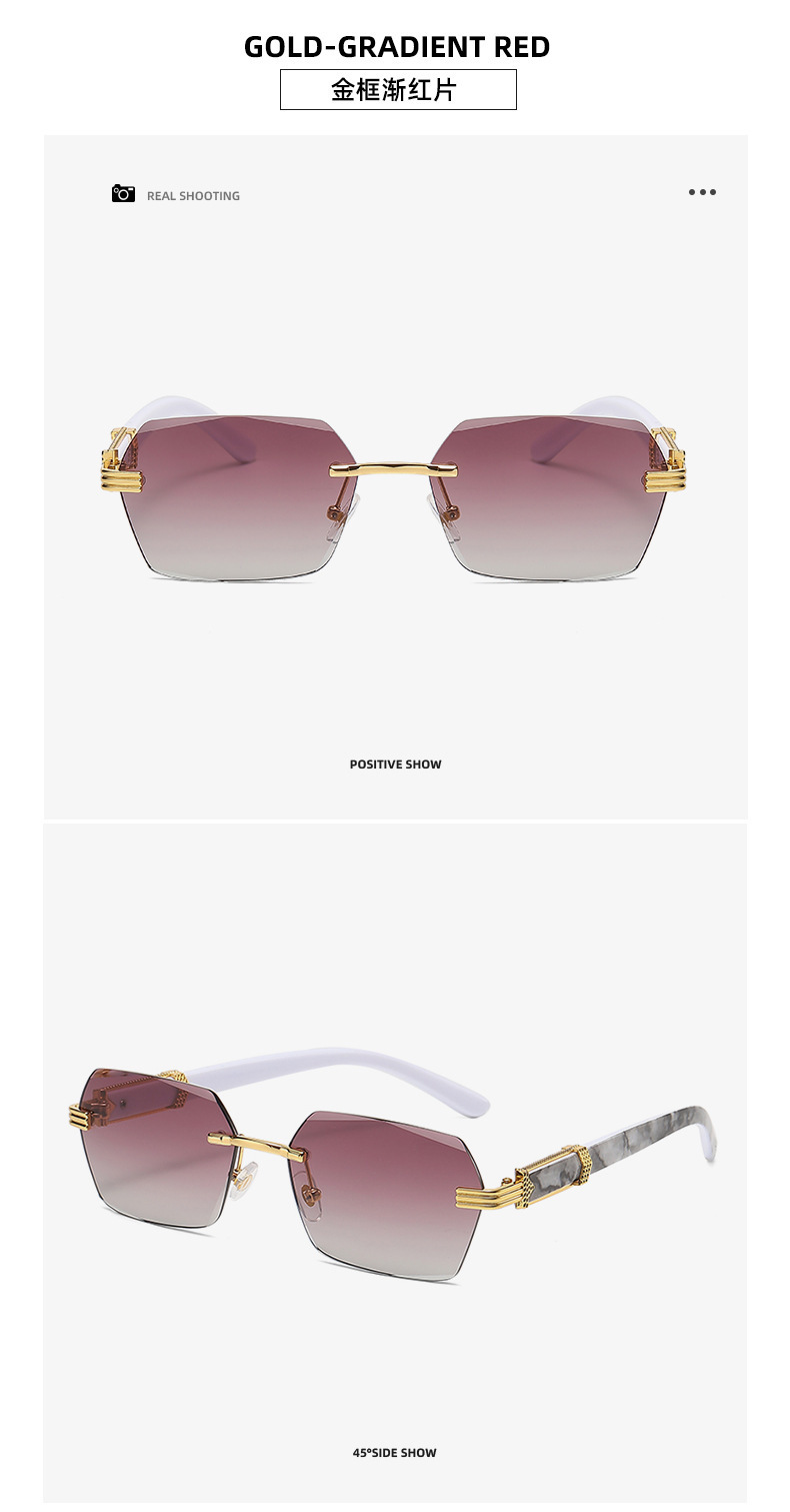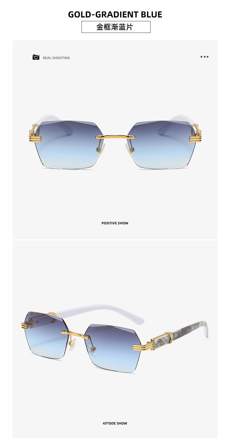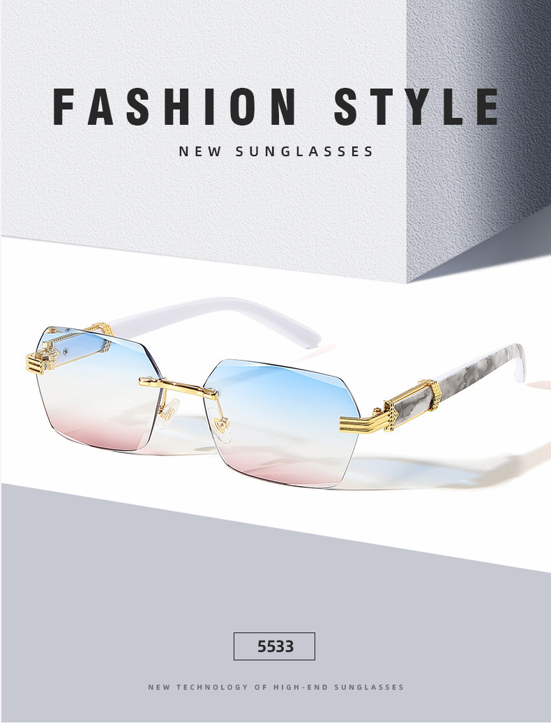 여성을 위한 새로운 크로스보더 프레임리스 엣지 컷 선글라스, 인터넷 연예인과 같은 패션 트렌드 그라데이션 컬러 오션 필름 선글라스스토어 가기