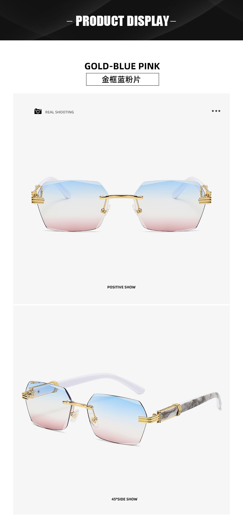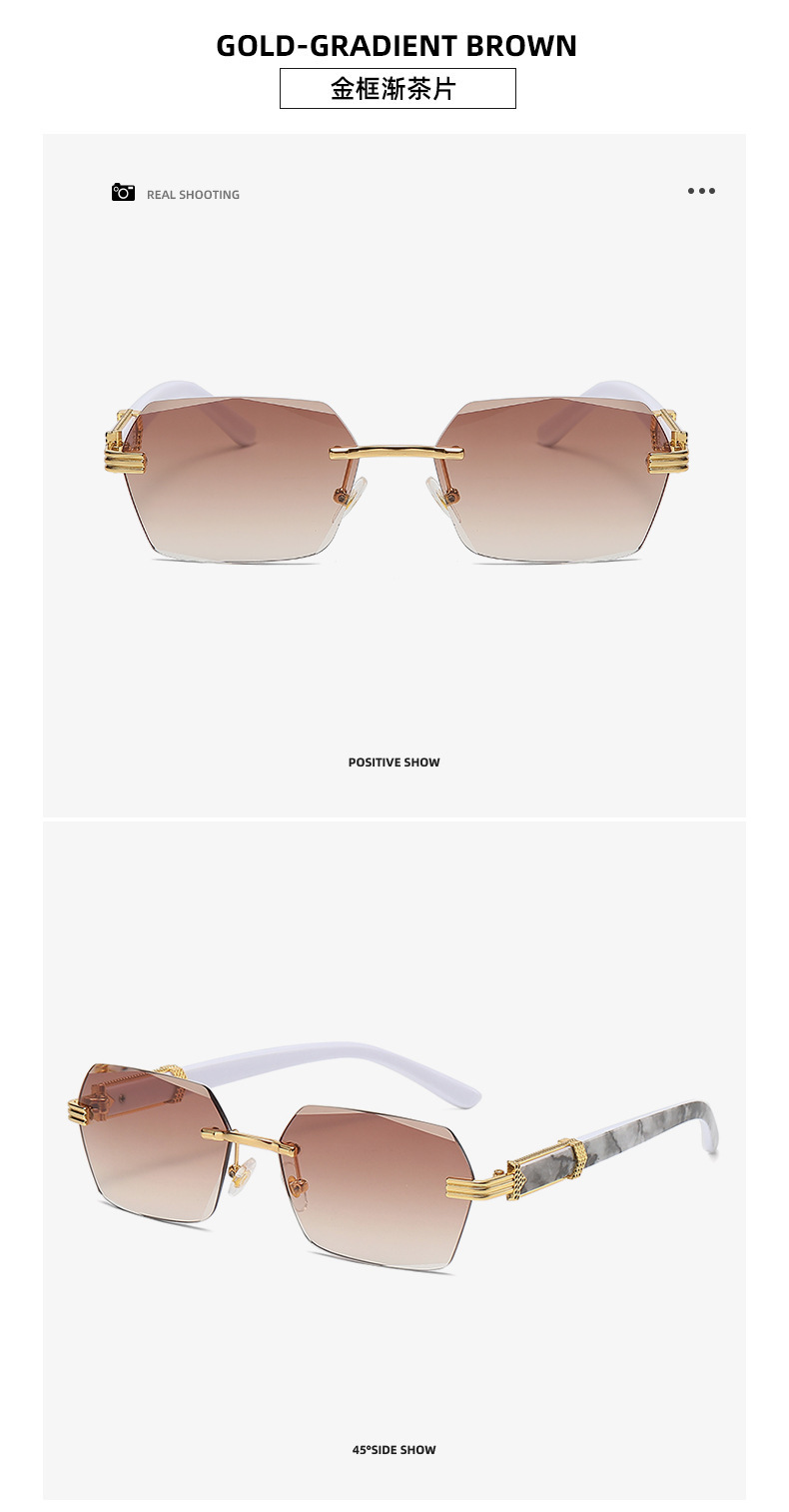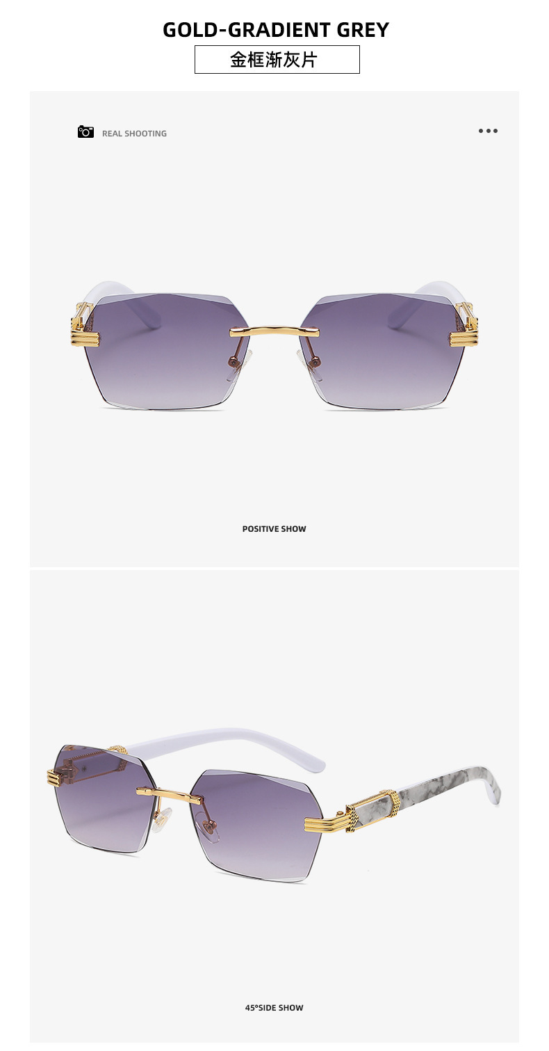 여성을 위한 새로운 크로스보더 프레임리스 엣지 컷 선글라스, 인터넷 연예인과 같은 패션 트렌드 그라데이션 컬러 오션 필름 선글라스스토어 가기
