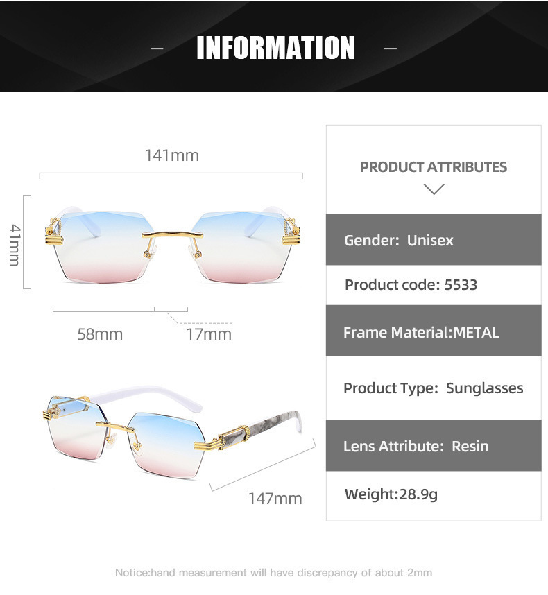 여성을 위한 새로운 크로스보더 프레임리스 엣지 컷 선글라스, 인터넷 연예인과 같은 패션 트렌드 그라데이션 컬러 오션 필름 선글라스
