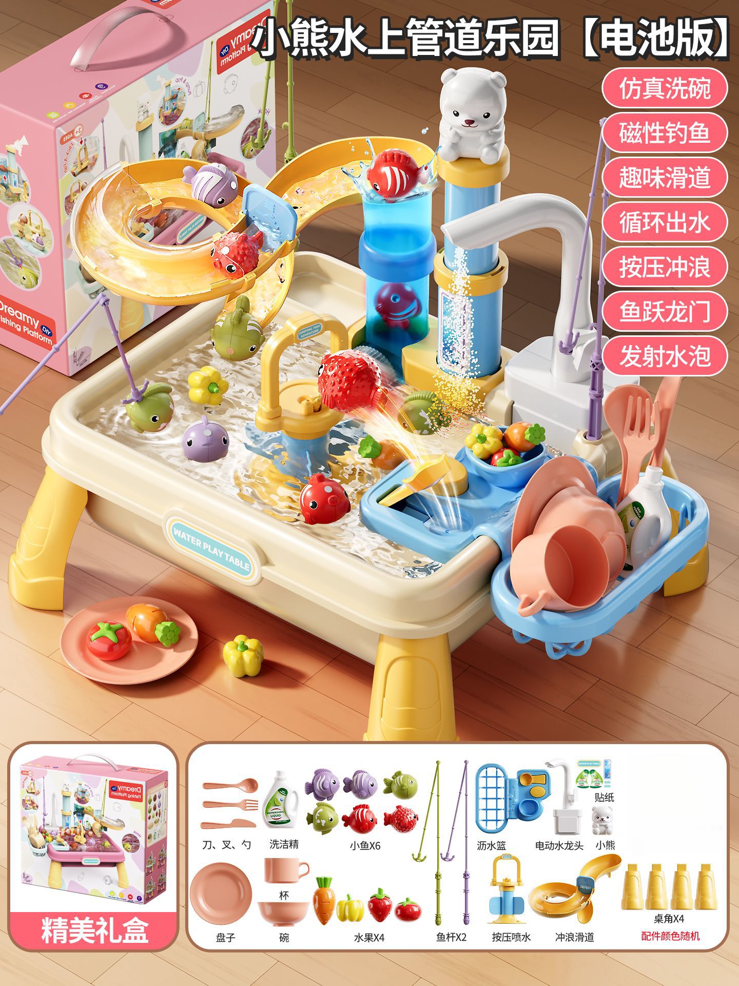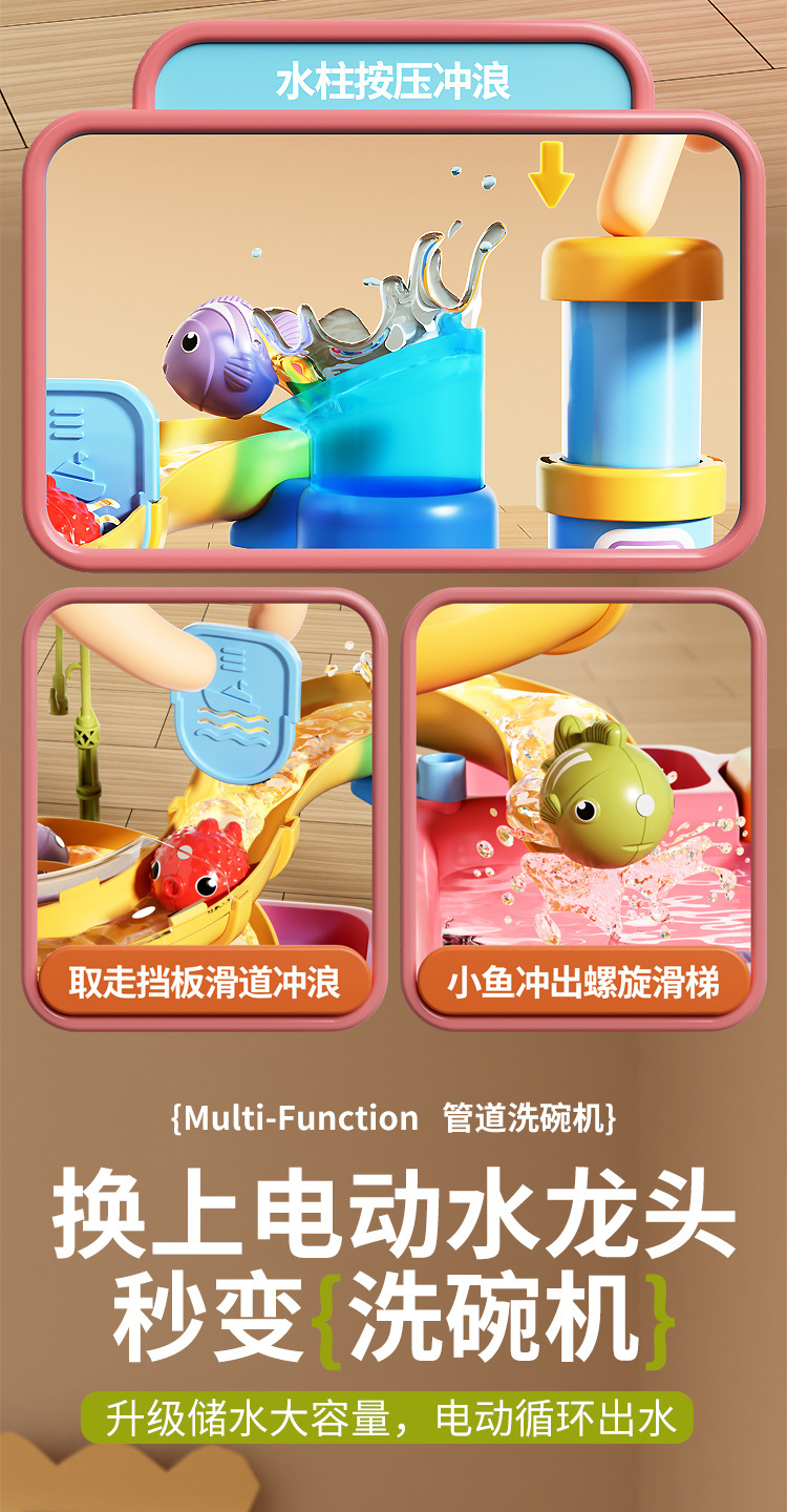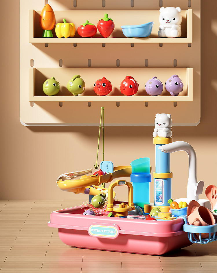 새로운 어린이용 파이프 식기세척기 장난감, 수도꼭지, 순환수, 요리, 놀이 주방, 워터파크스토어 가기