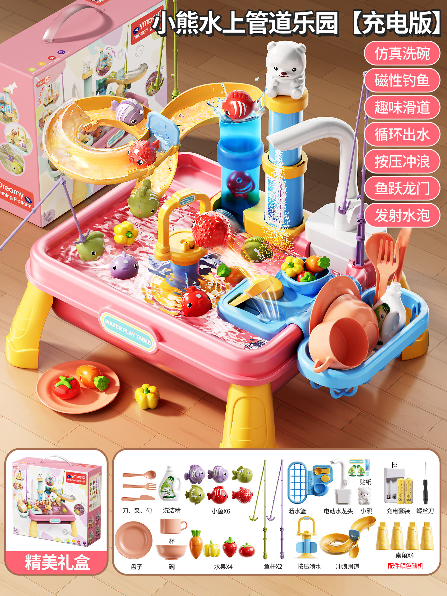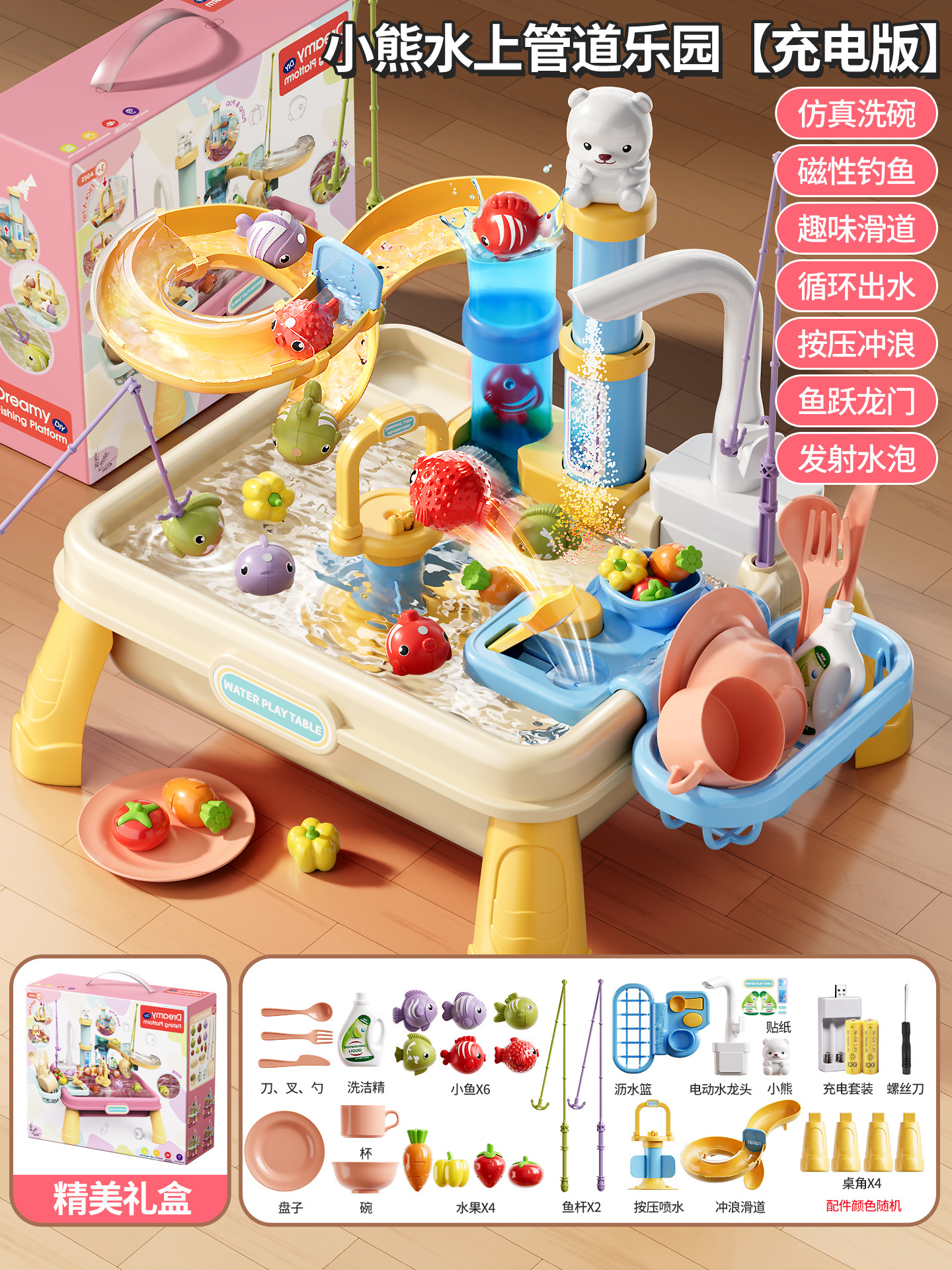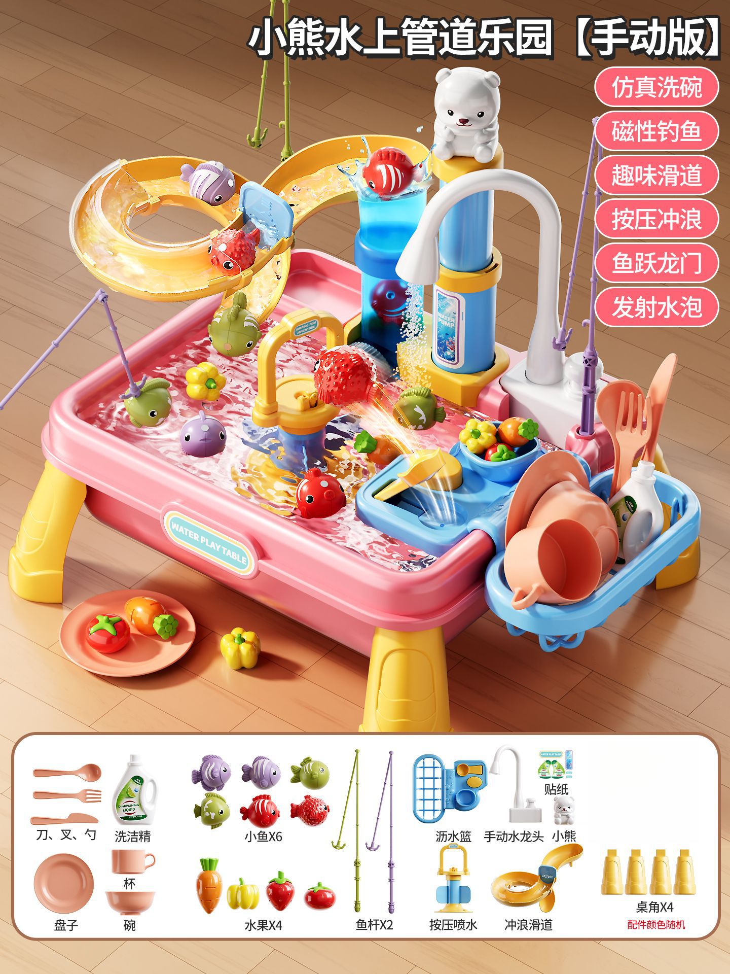 새로운 어린이용 파이프 식기세척기 장난감, 수도꼭지, 순환수, 요리, 놀이 주방, 워터파크스토어 가기