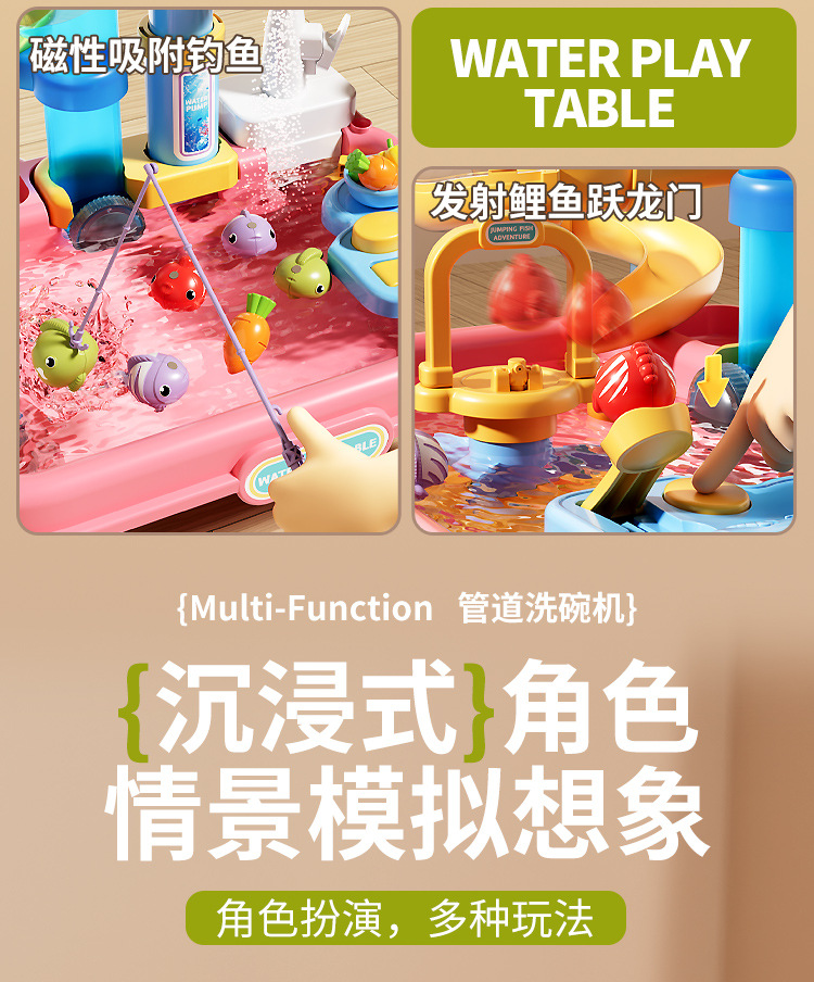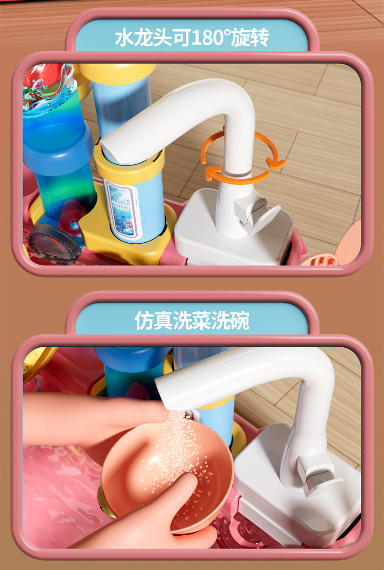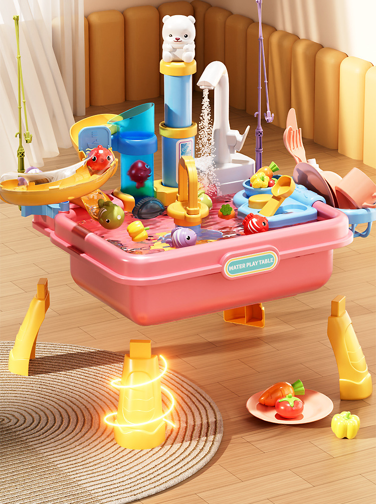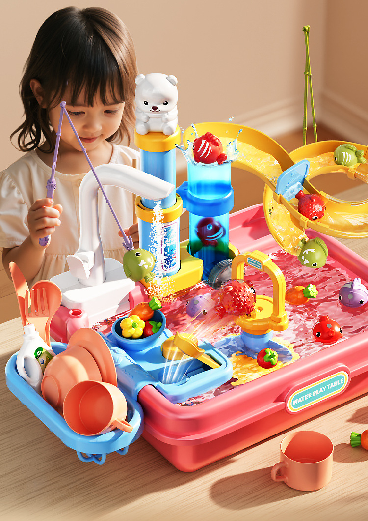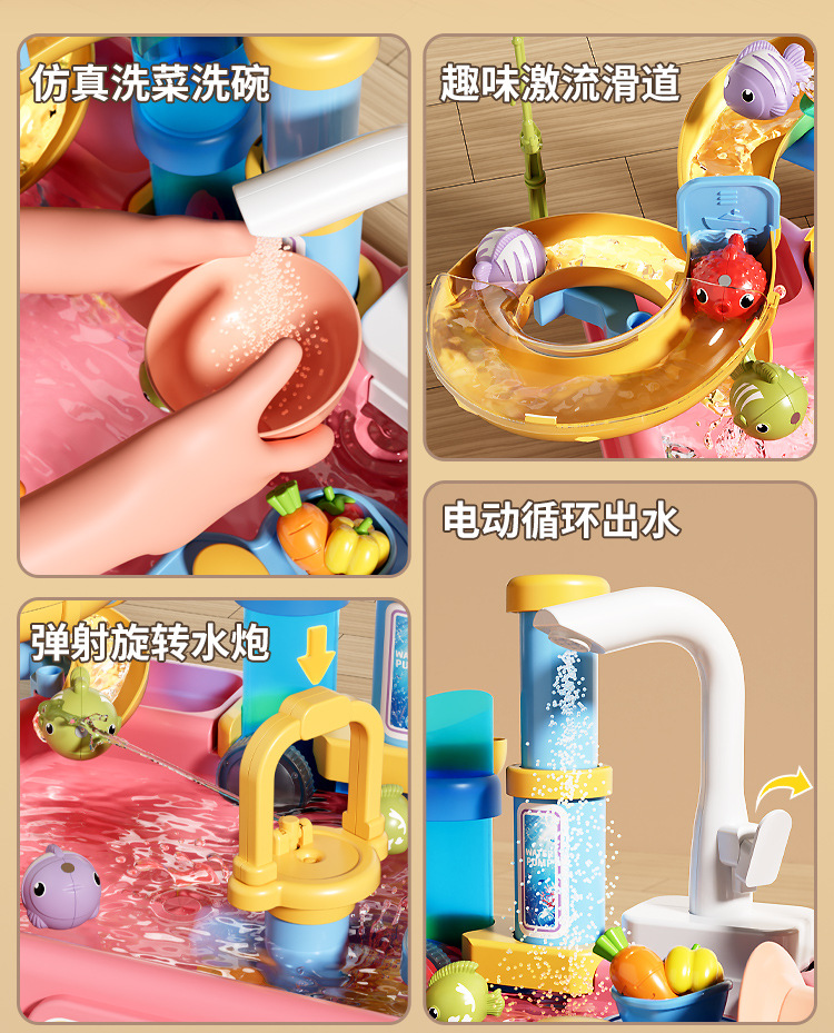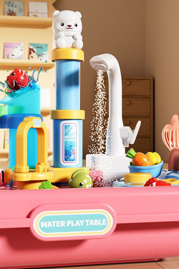 새로운 어린이용 파이프 식기세척기 장난감, 수도꼭지, 순환수, 요리, 놀이 주방, 워터파크