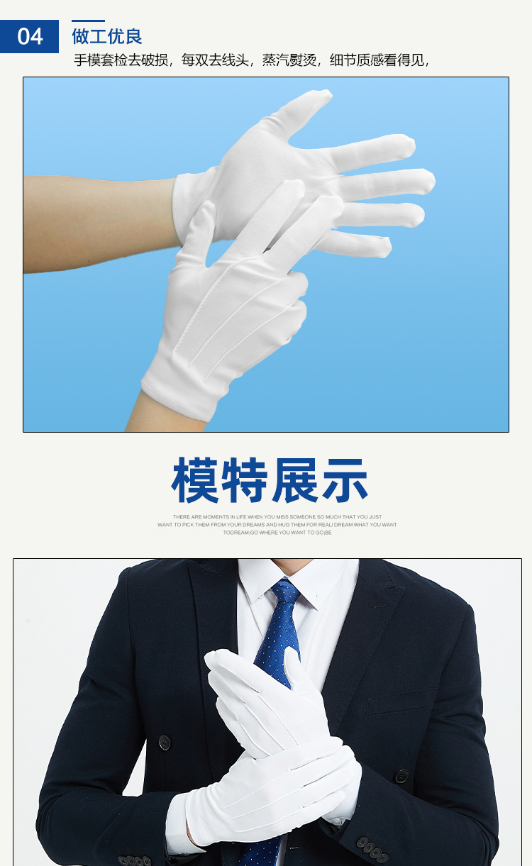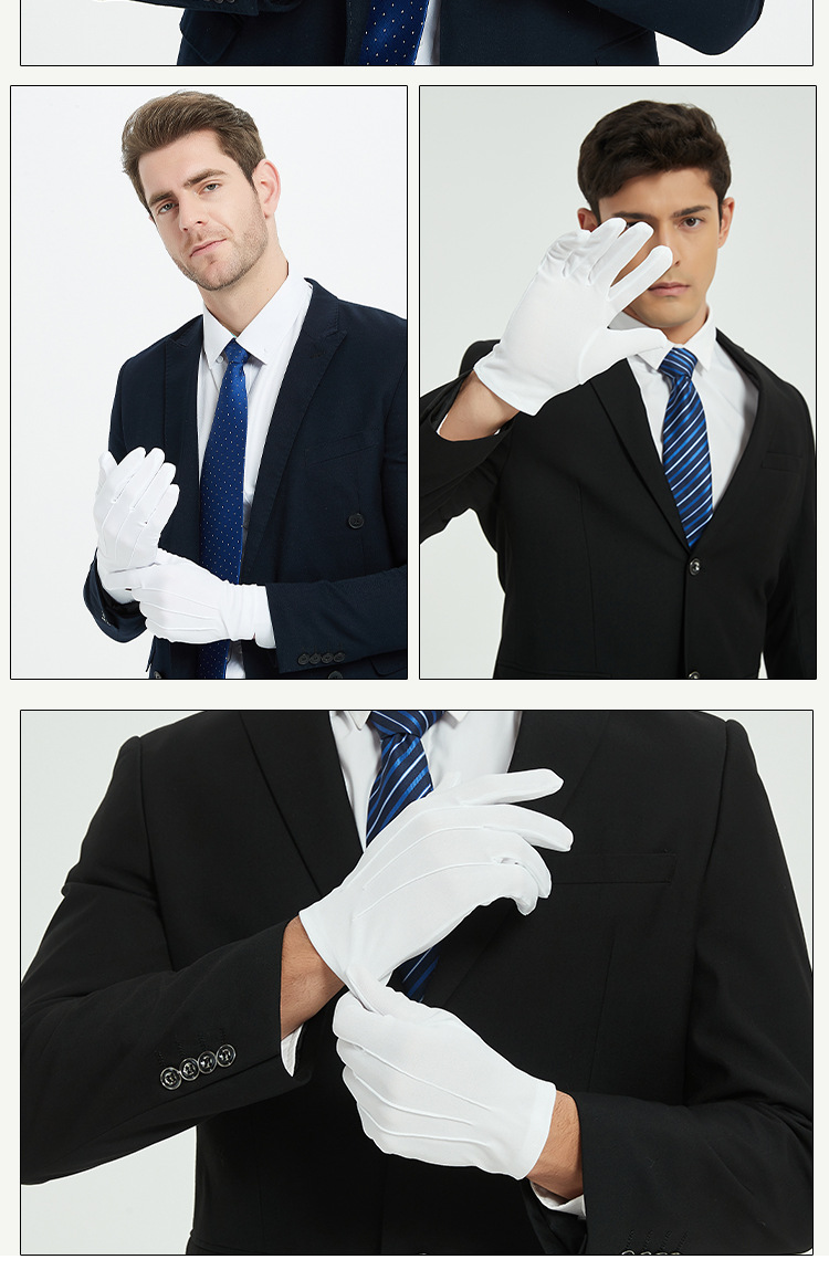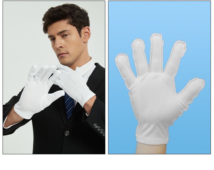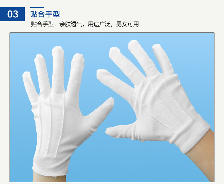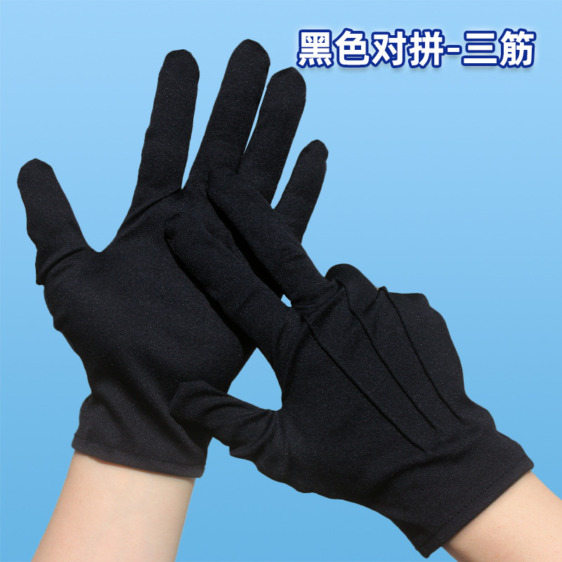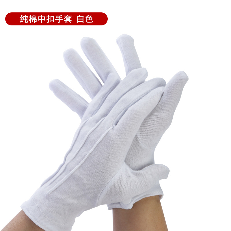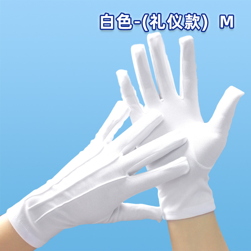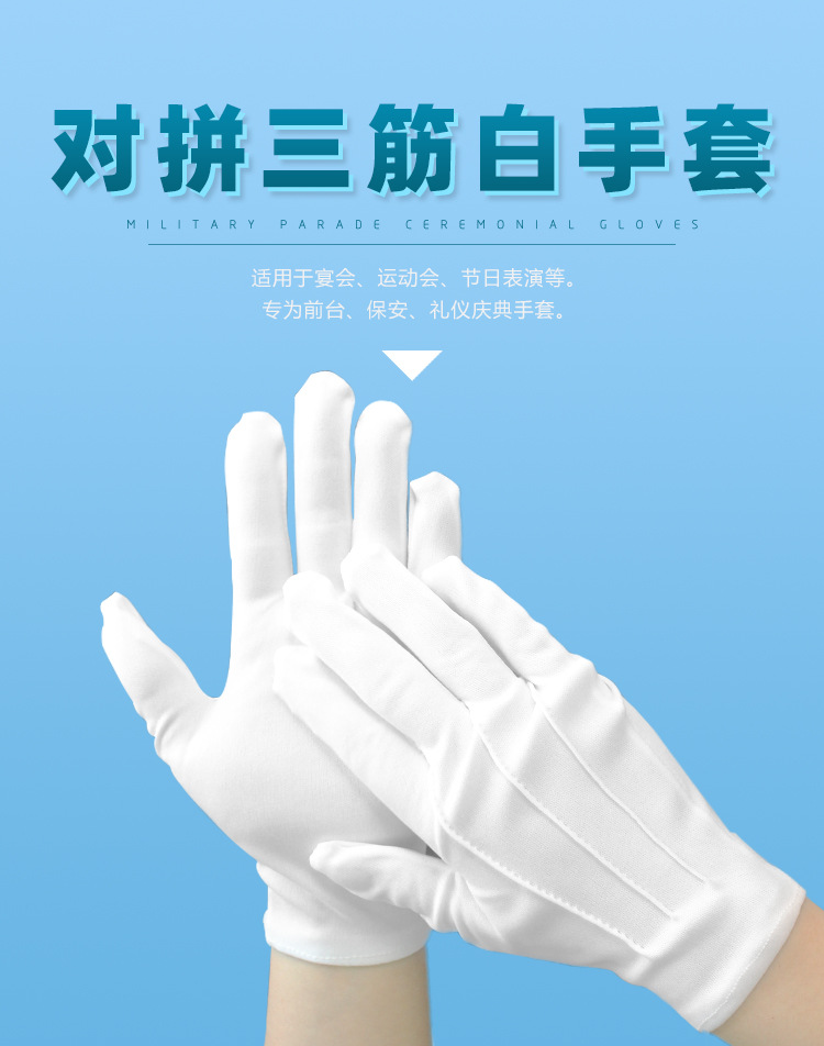 공장 직접 판매 도매 흰색 장갑 3줄 예절 미끄럼 방지 노동 보호 남성과 여성 봄과 가을 짧고 얇은 부동산 보안 깃발