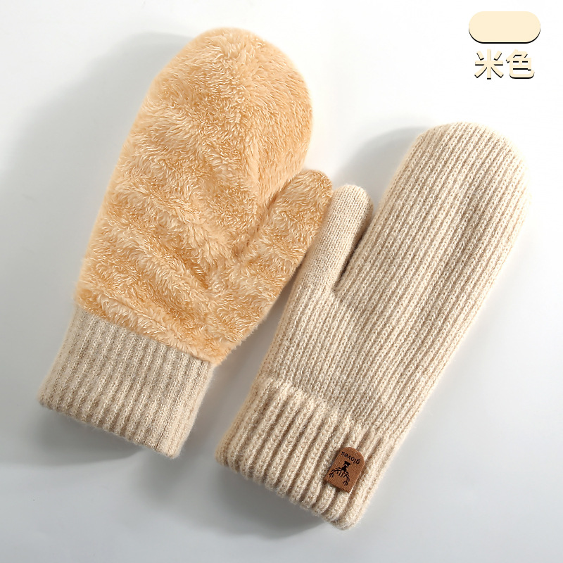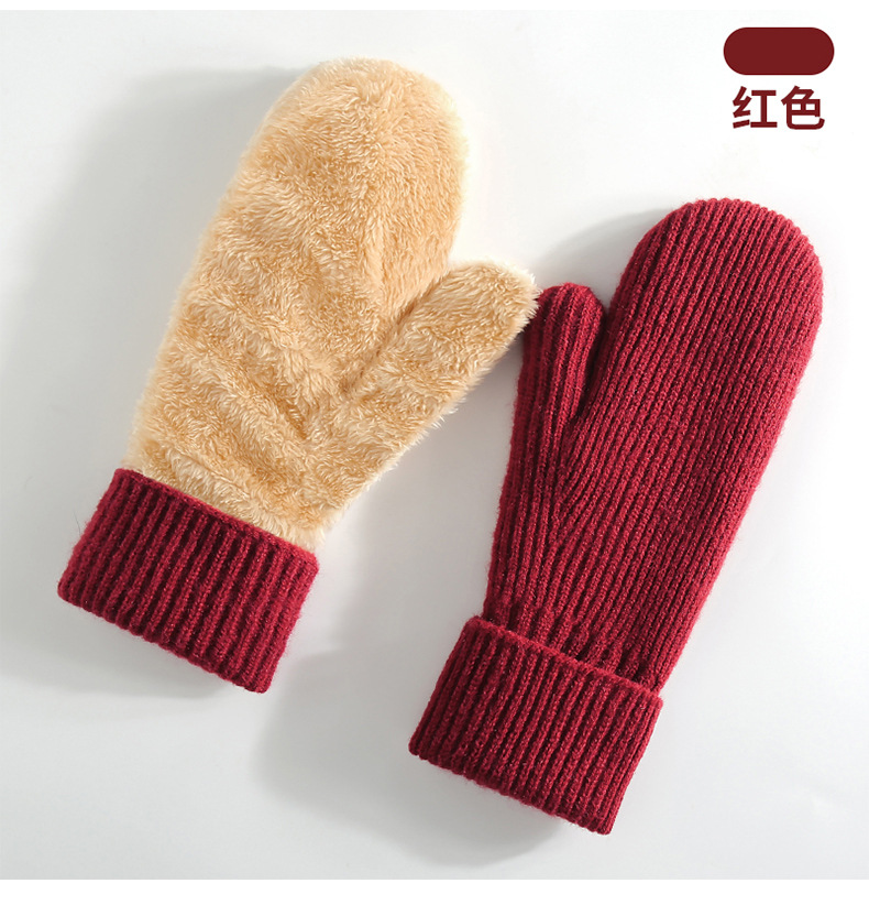 여성용 새로운 겨울 따뜻한 장갑, 벨벳 두꺼운 장갑, 사이클링 스키 울 커버 니트 장갑