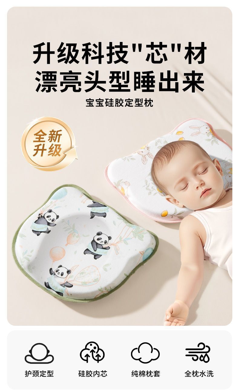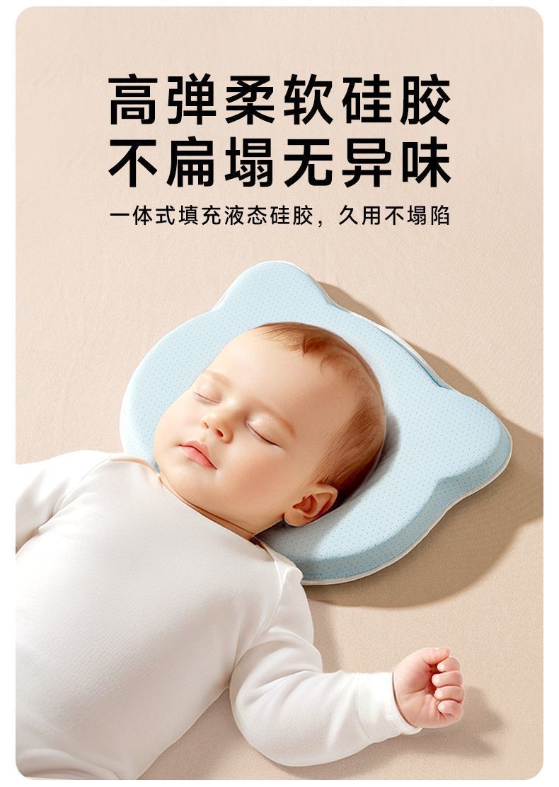 평평한 머리와 편심 머리, 둥근 머리를 교정하는 아기용 실리콘 모양 베개, 시원하고 통기성이 좋은 실리콘 베개스토어 가기