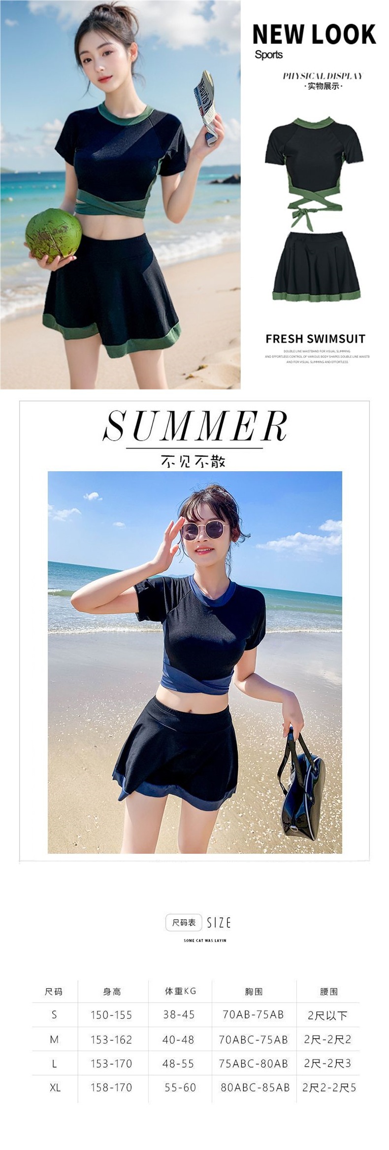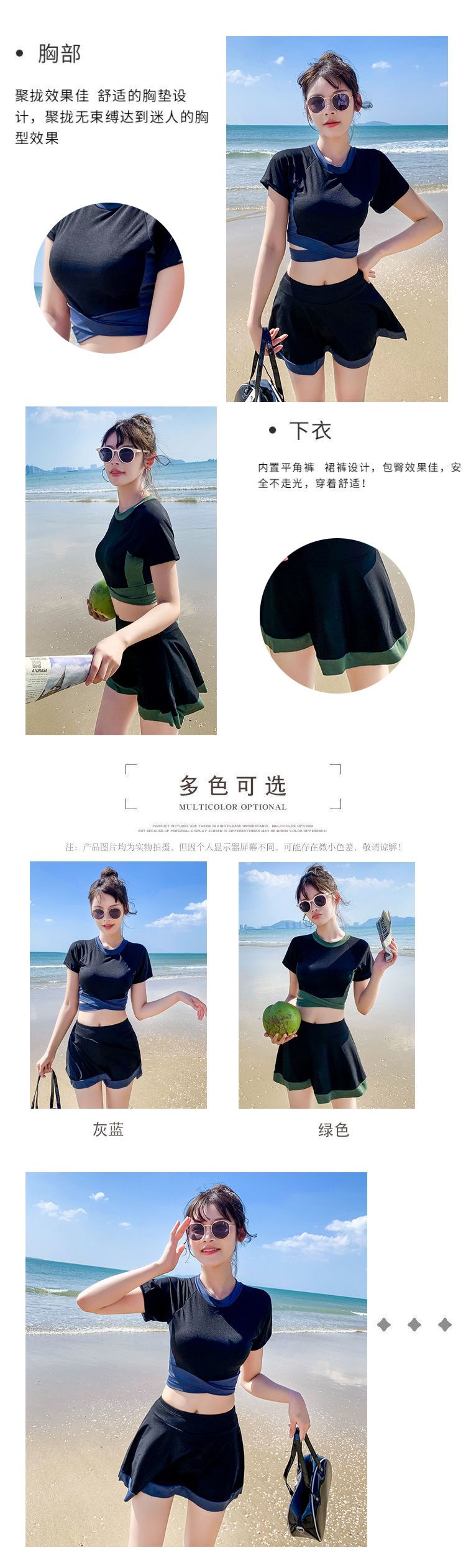 여성용 수영복, 두피스 스타일, 살과 배를 커버해주는 보수적인 온천학생 초중학생 여아용 슈퍼 페어리 스커트 스타일