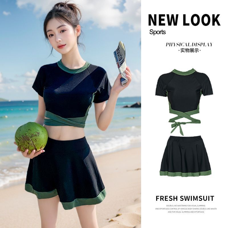 여성용 수영복, 두피스 스타일, 살과 배를 커버해주는 보수적인 온천학생 초중학생 여아용 슈퍼 페어리 스커트 스타일스토어 가기