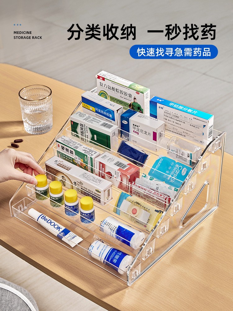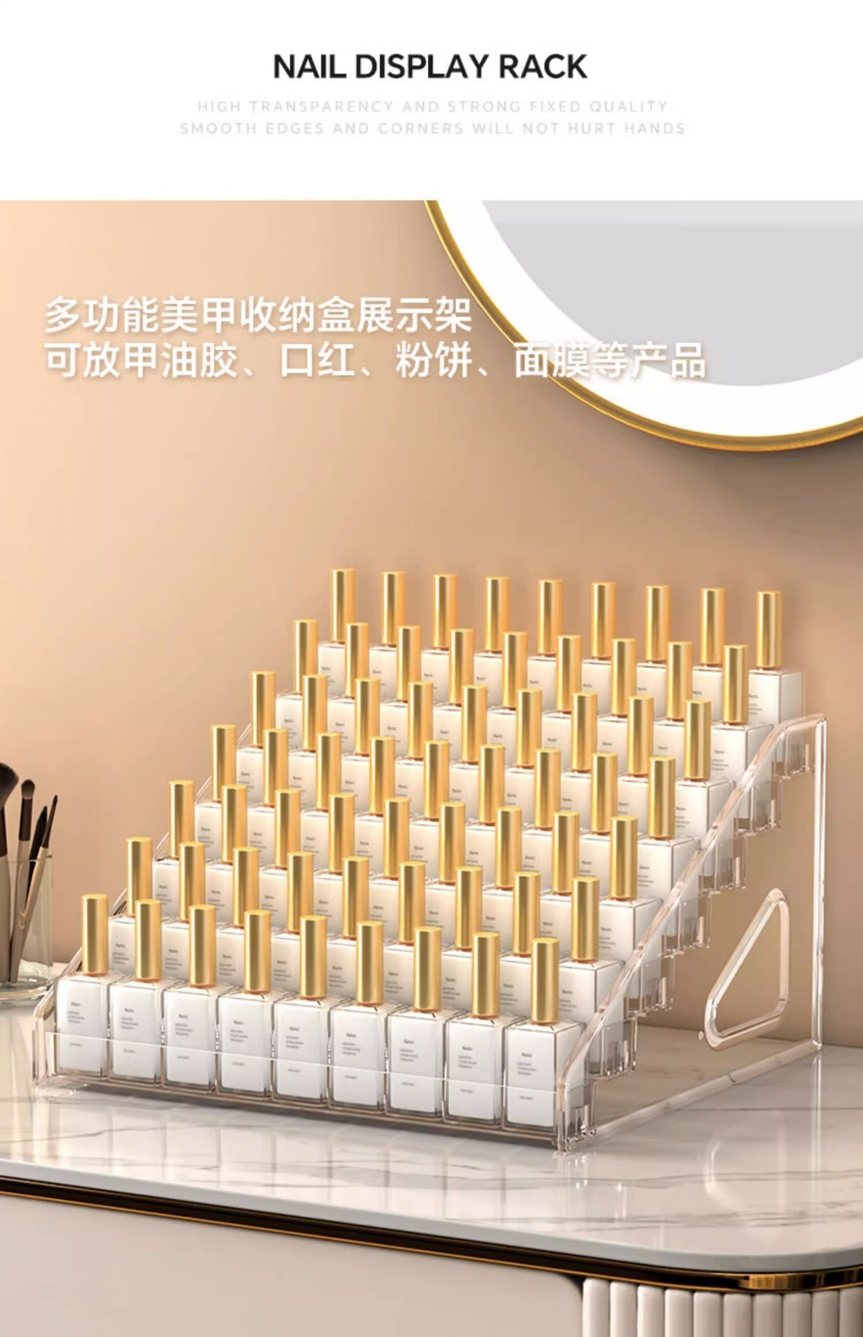 아크릴 디스플레이 스탠드, 사다리형 바약품 보관함, 손으로 만든 투명 아이섀도 데스크탑 화장품 보관함