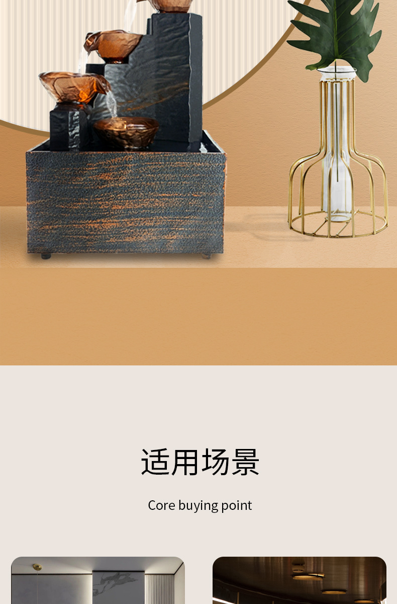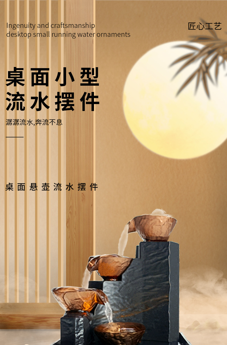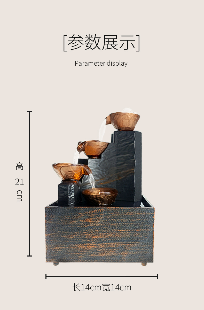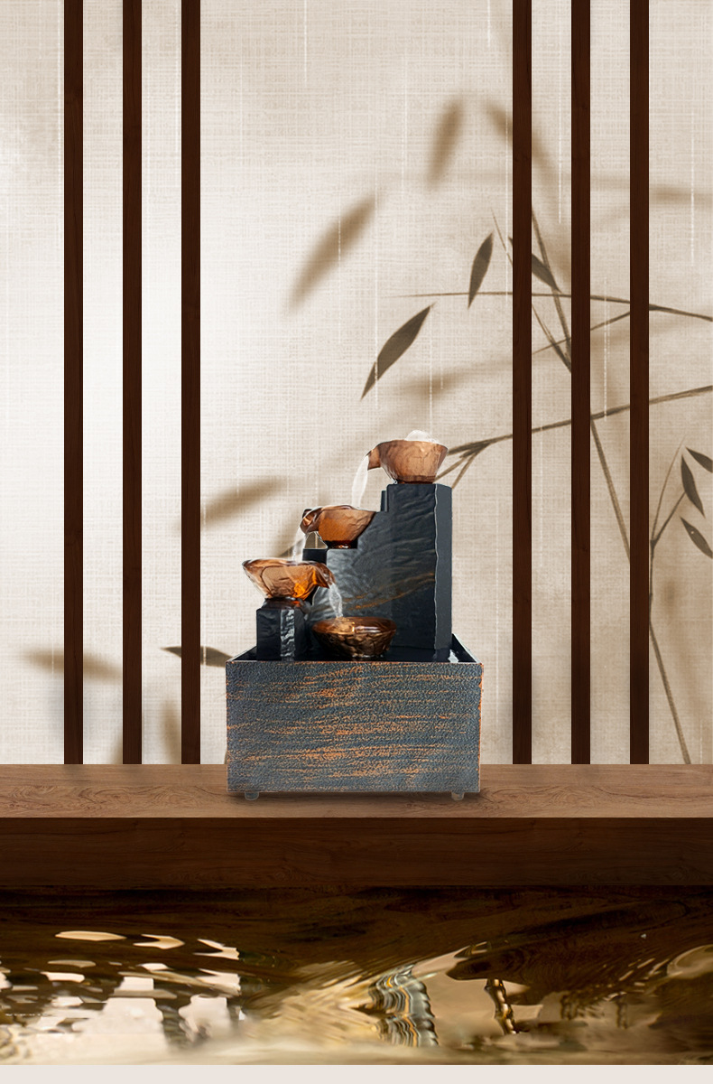 데스크탑 흐르는 물 장식품, 거실, 사무실 프론트 데스크, 순환 분수, 풍수 휠, 부와 부를 끌어들이는, 개업 및 집들이 선물