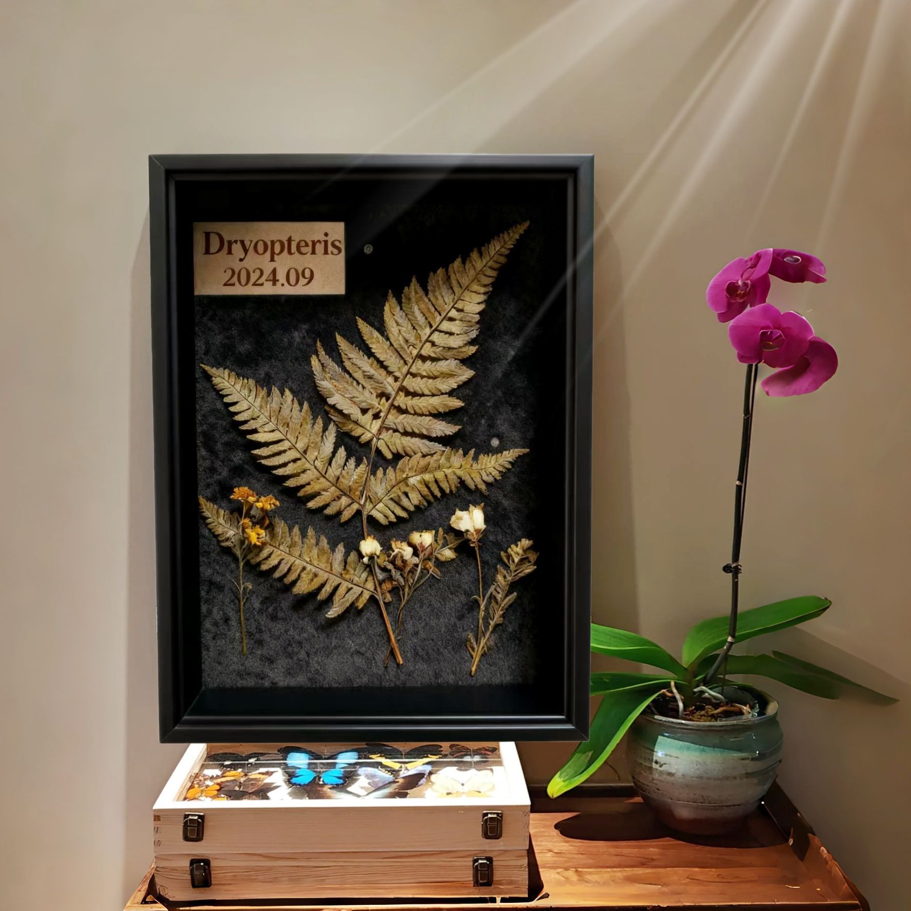 말린 꽃 식물 솔방울 표본 액자 중공 4cm 입체 나무 액자 장식품 고급 액자 빈 프레임스토어 가기