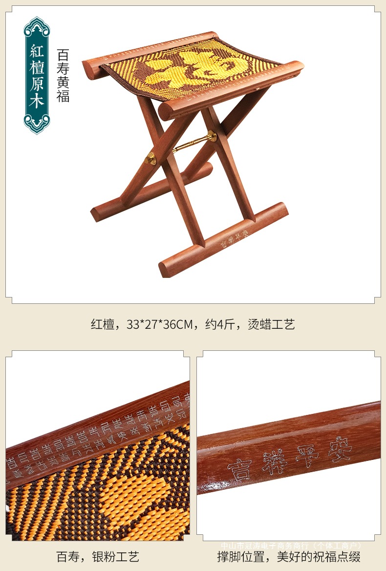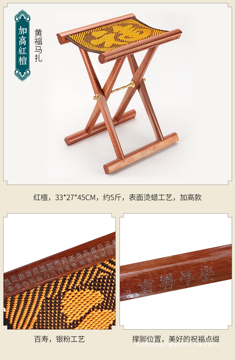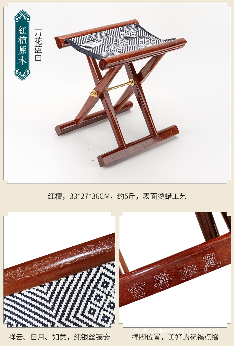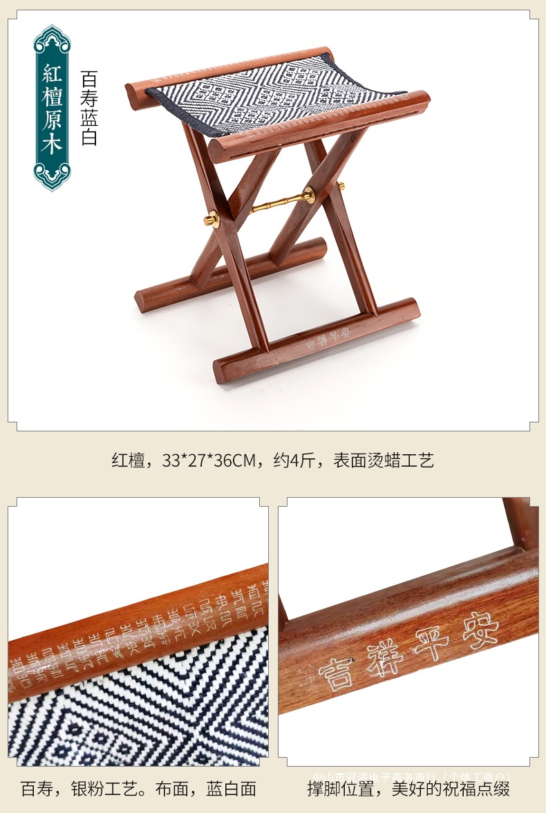 단단한 나무 Mazar 휴대용 접이식 의자 의자 마호가니 신발 변경 낚시 벤치 노인을위한 선물 Zibo 특산품