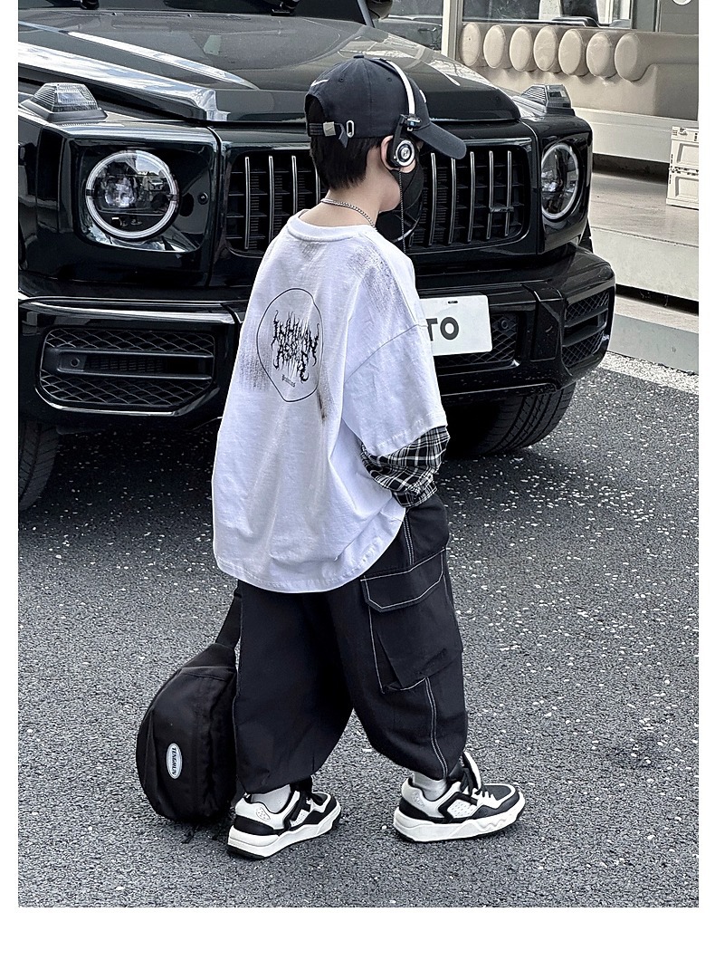 아동용 가짜 투피스 티셔츠 봄, 가을 소년 긴팔 라운드 넥 셔츠 소년 가을 멋진 스트리트 댄스 탑스토어 가기