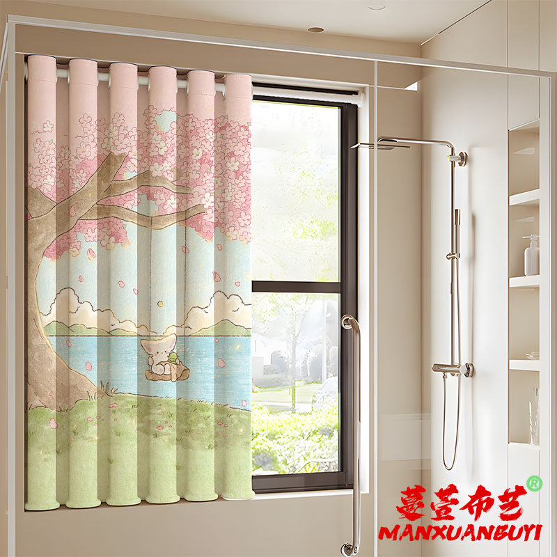 욕실 화장실 가정용 커튼은 침실 화장실 작은 창 방수 및 엿보기 방지 커튼을 설치하기 위해 펀치 없이 설치됩니다.