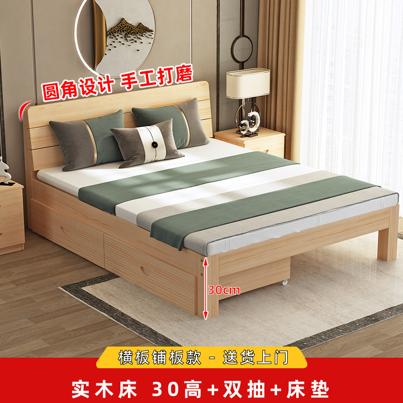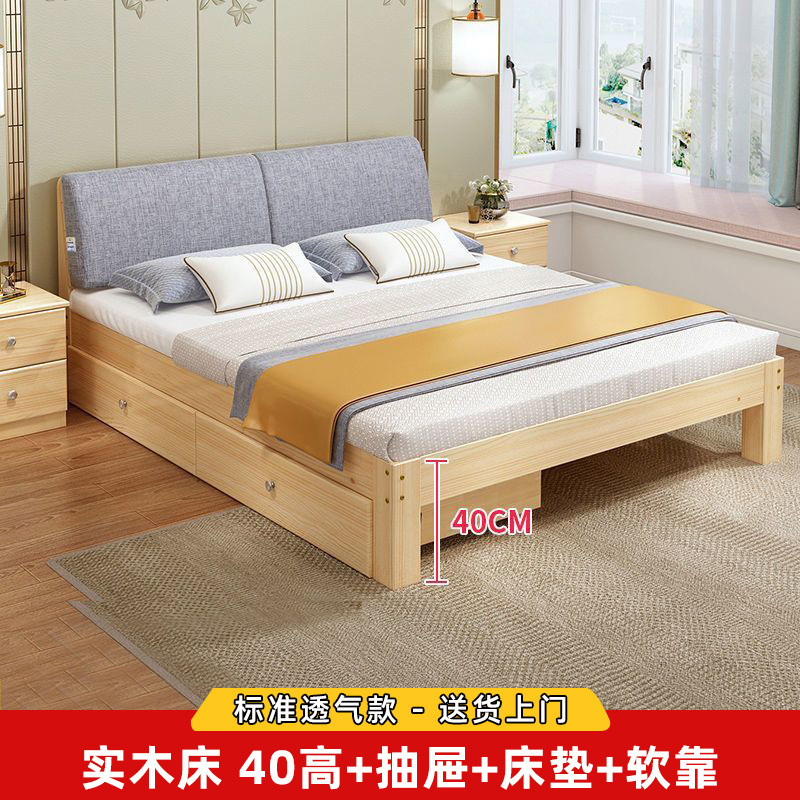 원목 침대 모던 심플 2m 더블 1.8m 대형 침대 싱글 침대 1.5m 가정용 원목 침대 1m 침대 1.2m스토어 가기