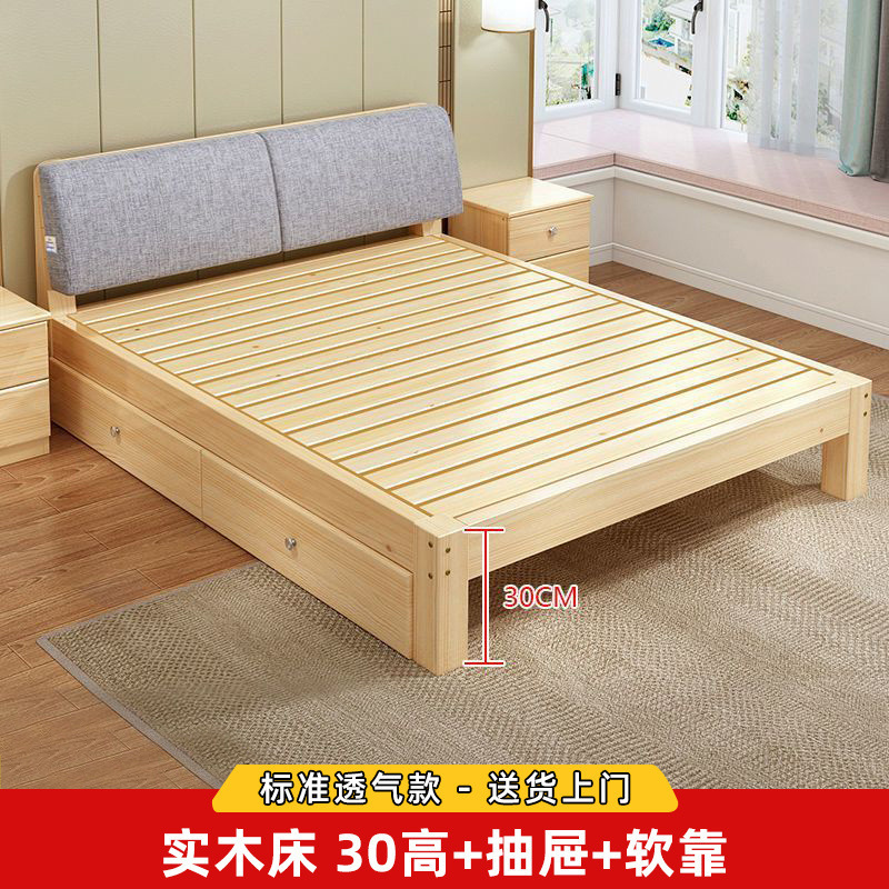 • 침대 높이 30cm + 통나무 다리 + 이중 서랍 [표준 통기성]