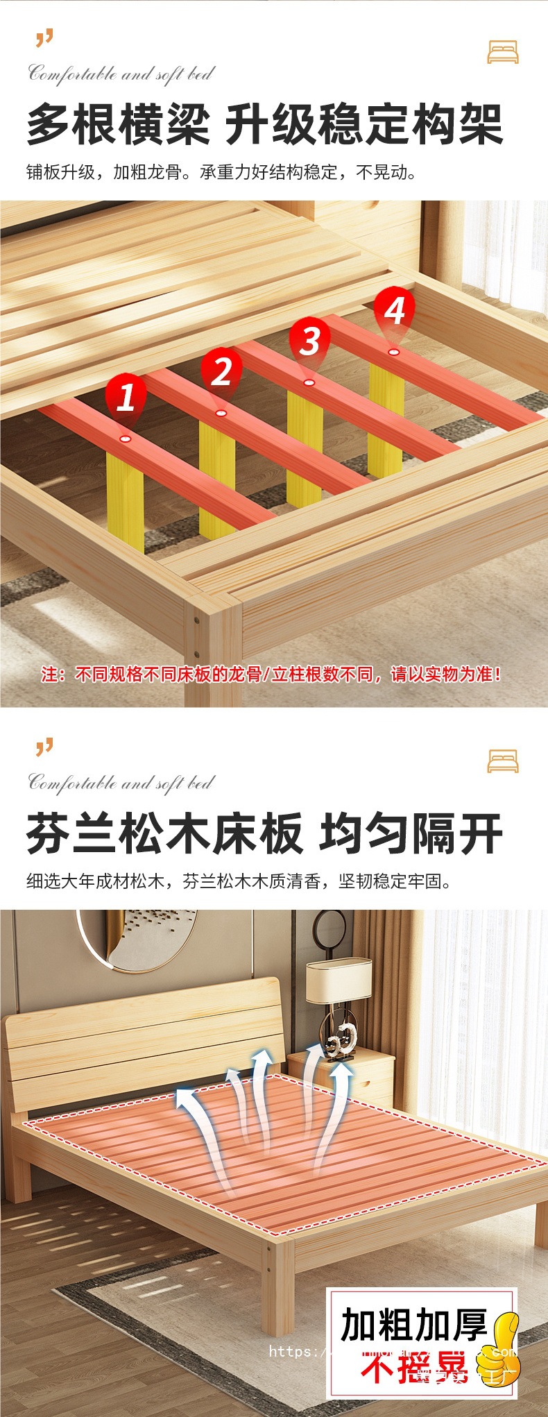 • 침대 높이 30cm + 통나무 다리 + 두꺼운 용골 [표준 통기성]