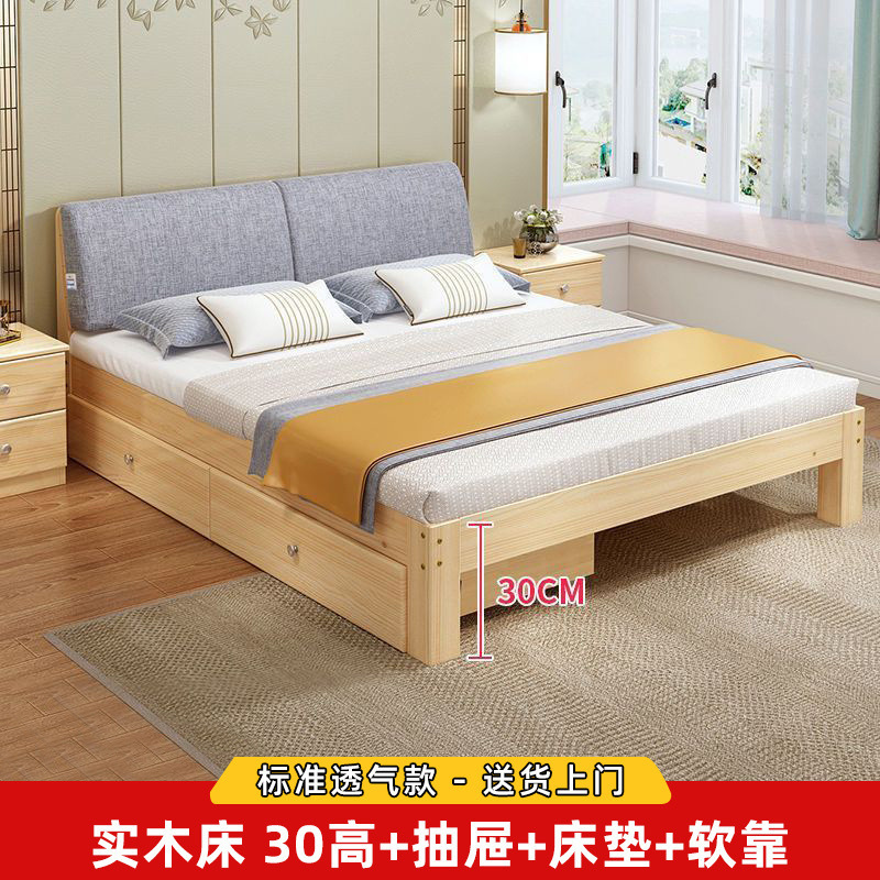 원목 침대 모던 심플 2m 더블 1.8m 대형 침대 싱글 침대 1.5m 가정용 원목 침대 1m 침대 1.2m