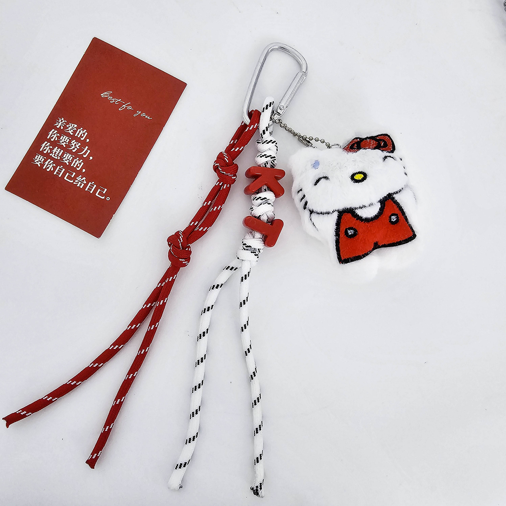 귀여운 레드 핑크 키티 플러시 가방 걸이 소녀 하트 KT 고양이 키 체인 가방 학교 가방 펜던트