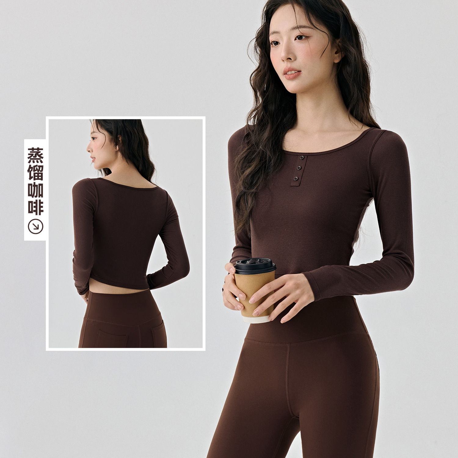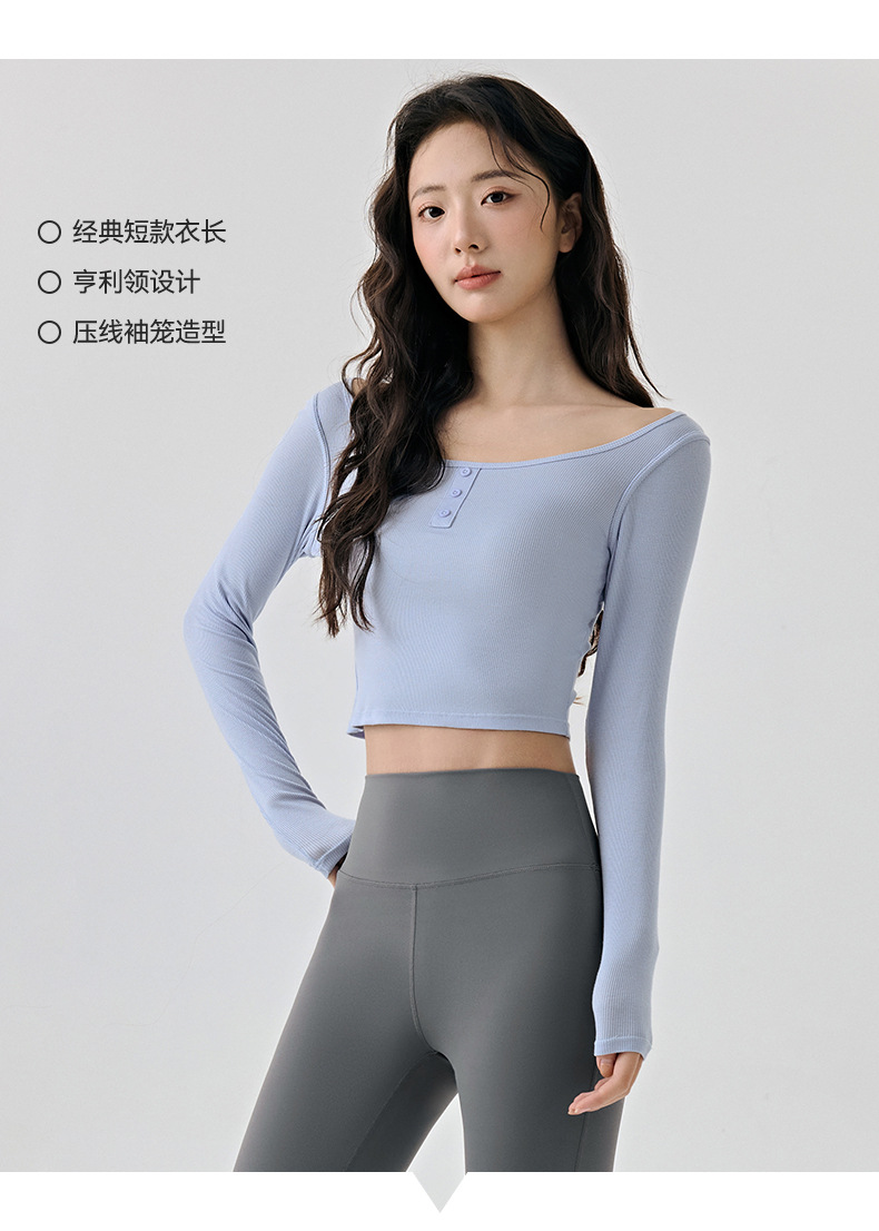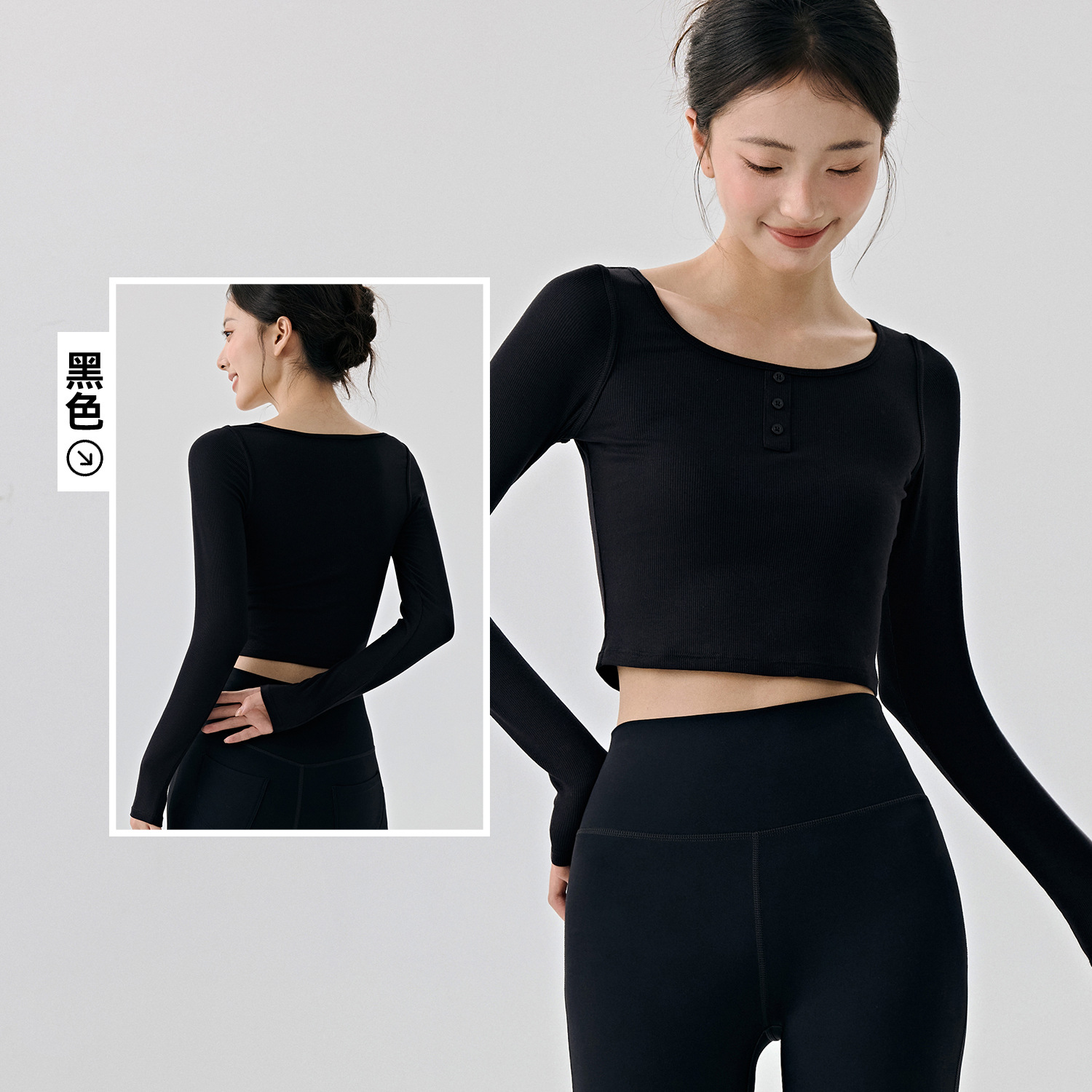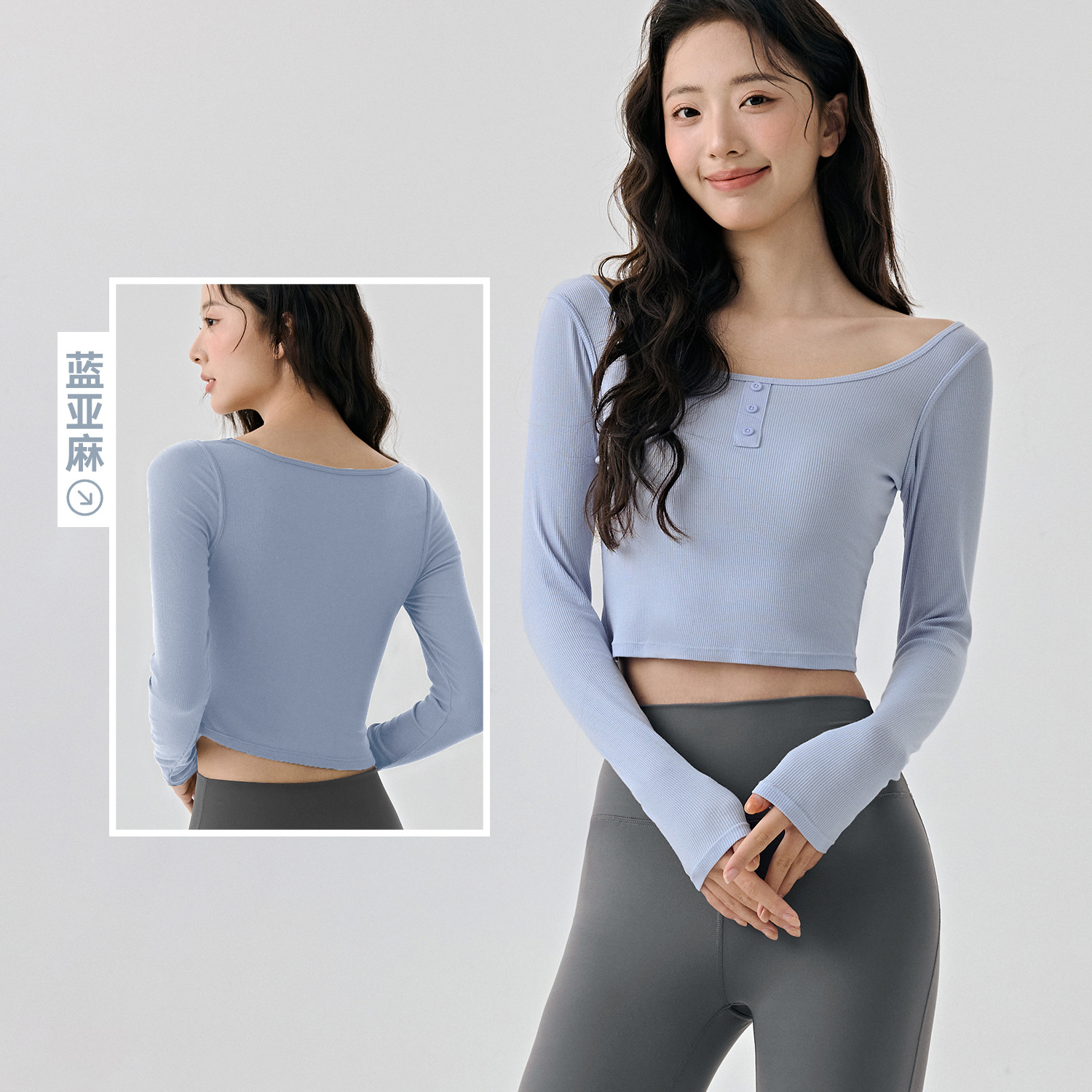 여성용 라운드 넥 슬림 긴팔 요가복, 슬림 스포츠 아우터, 패셔너블한 헨리 칼라 짧은 피트니스 요가복 상의