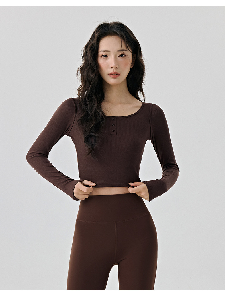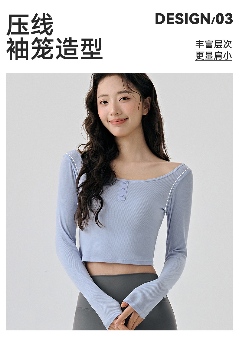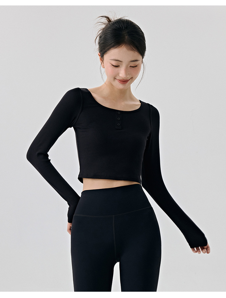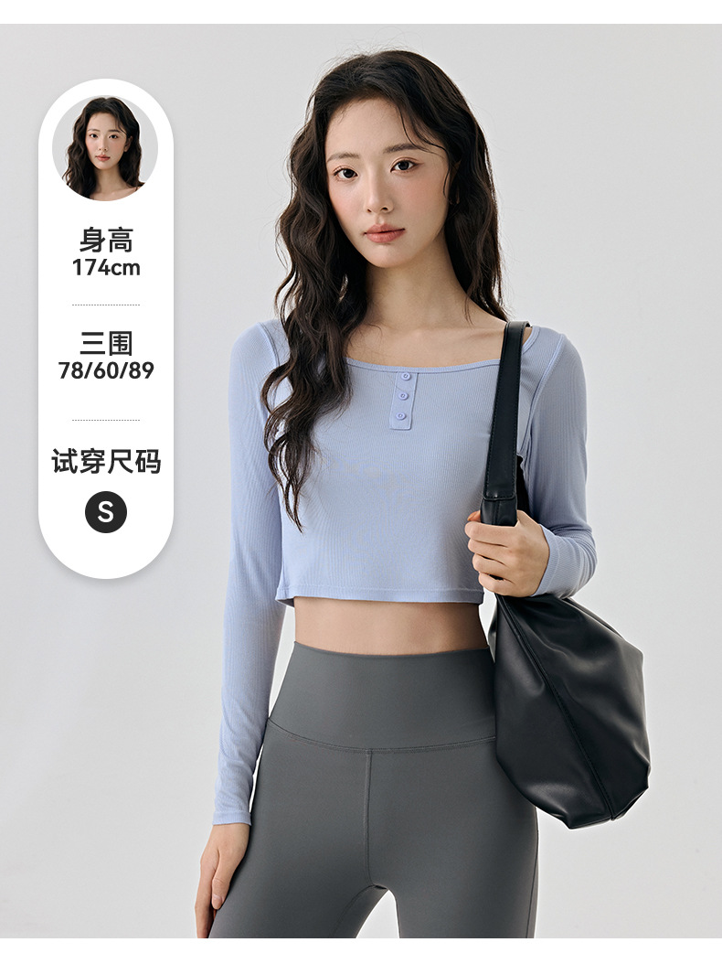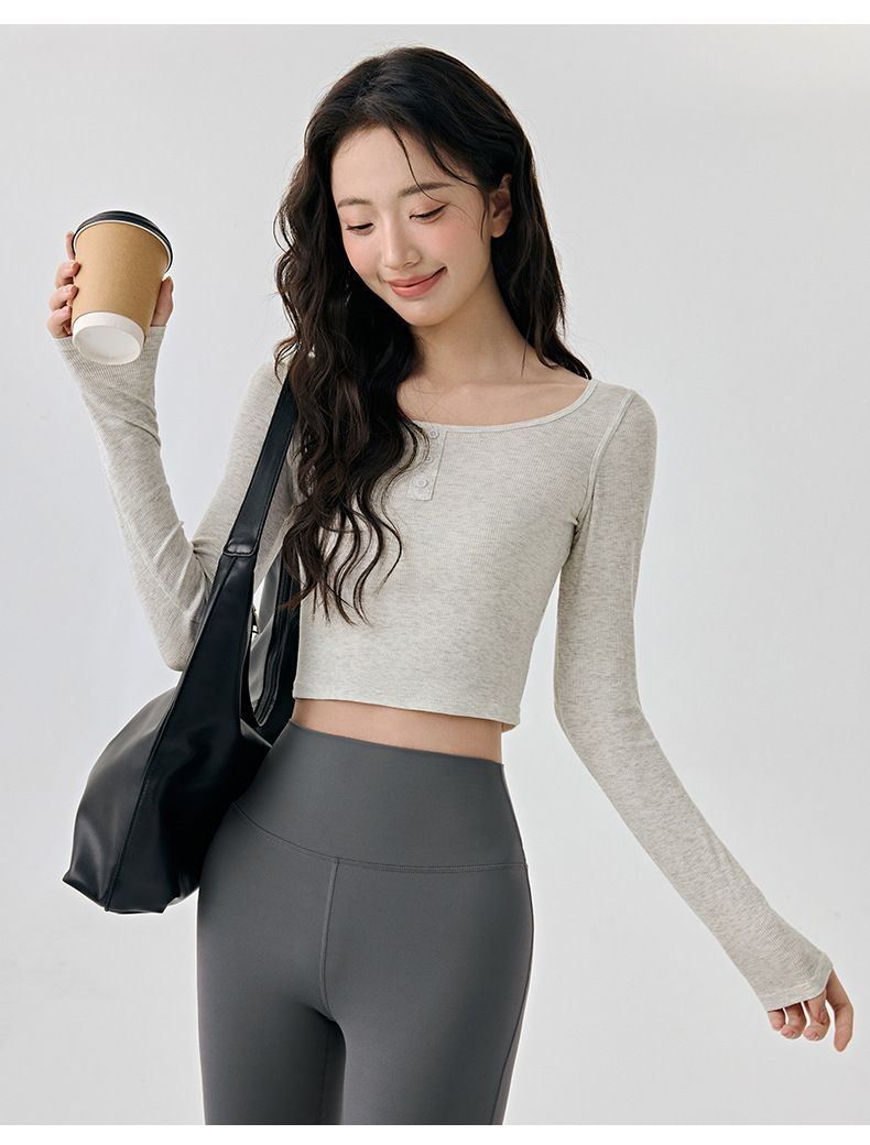 여성용 라운드 넥 슬림 긴팔 요가복, 슬림 스포츠 아우터, 패셔너블한 헨리 칼라 짧은 피트니스 요가복 상의
