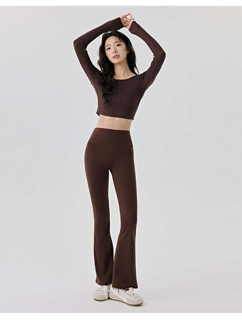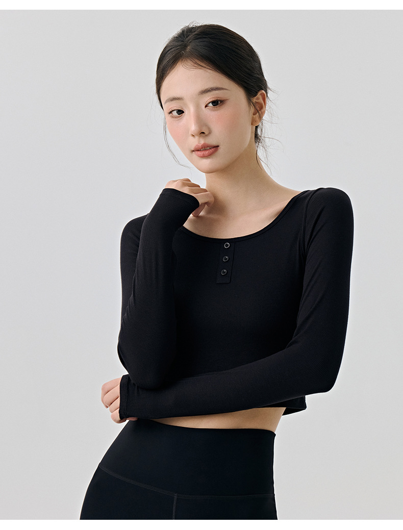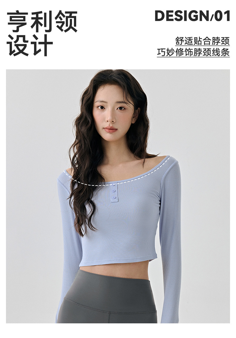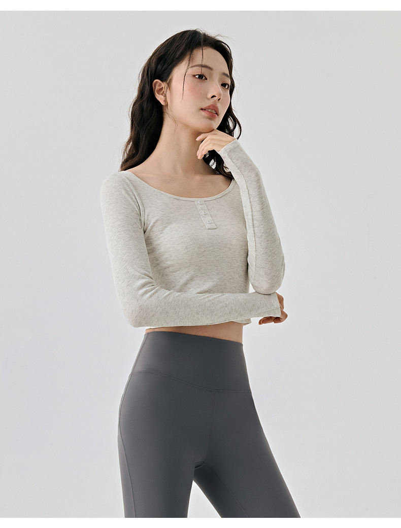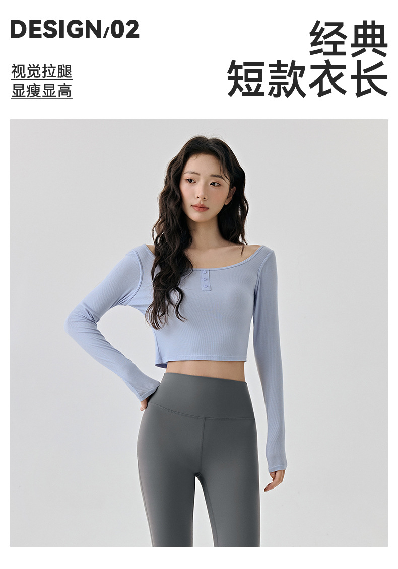 여성용 라운드 넥 슬림 긴팔 요가복, 슬림 스포츠 아우터, 패셔너블한 헨리 칼라 짧은 피트니스 요가복 상의