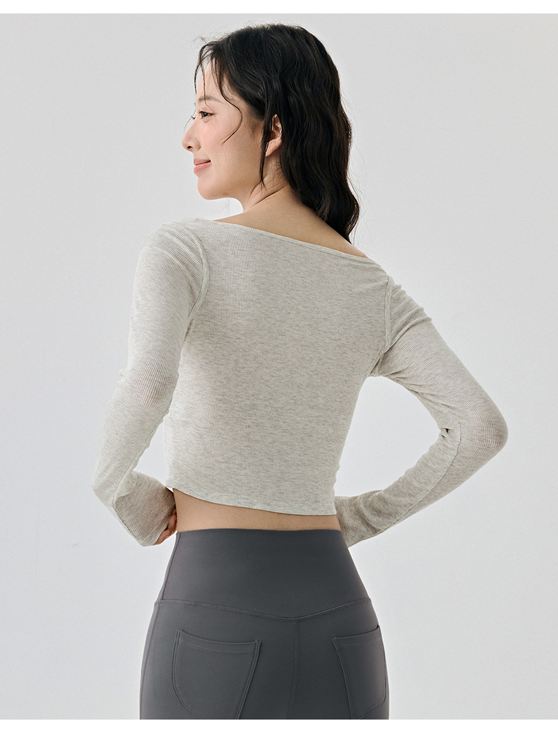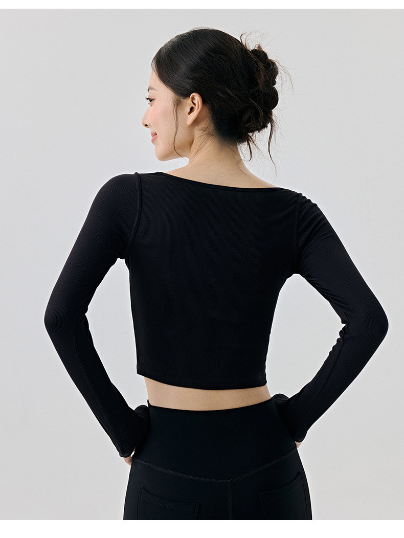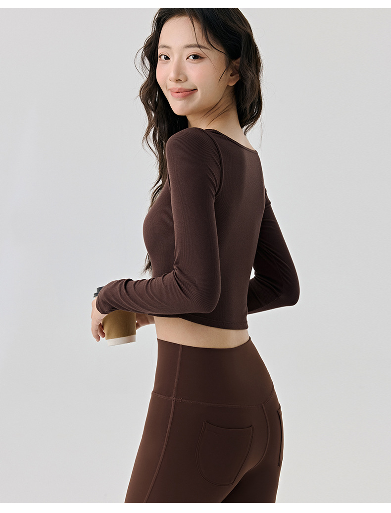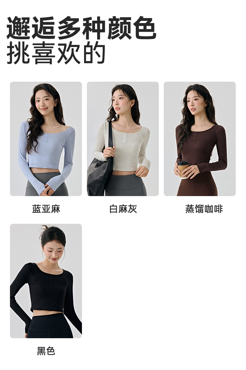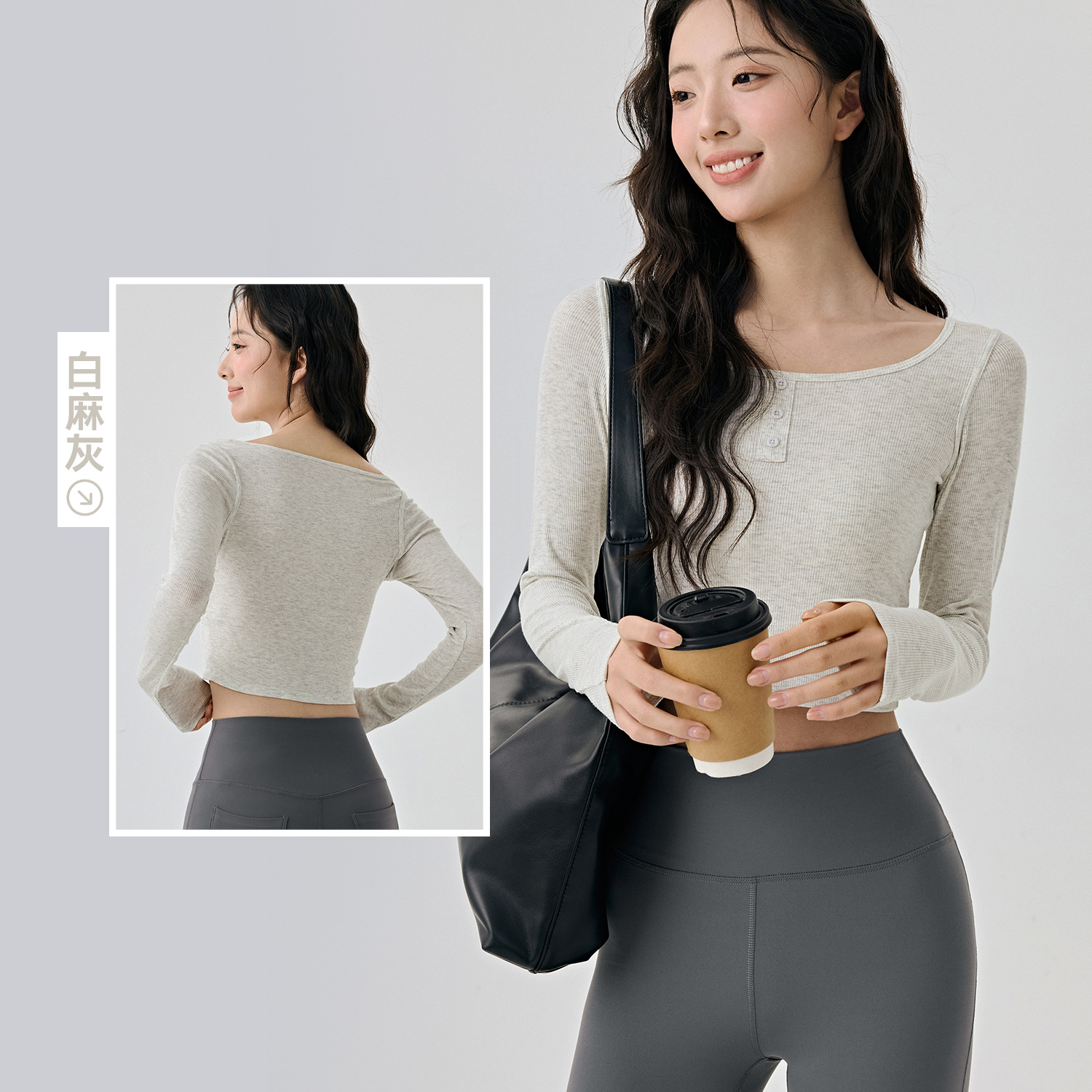 여성용 라운드 넥 슬림 긴팔 요가복, 슬림 스포츠 아우터, 패셔너블한 헨리 칼라 짧은 피트니스 요가복 상의스토어 가기