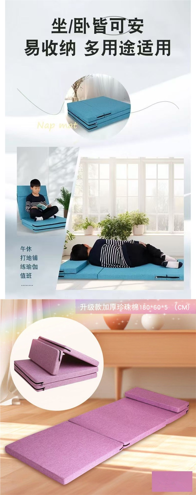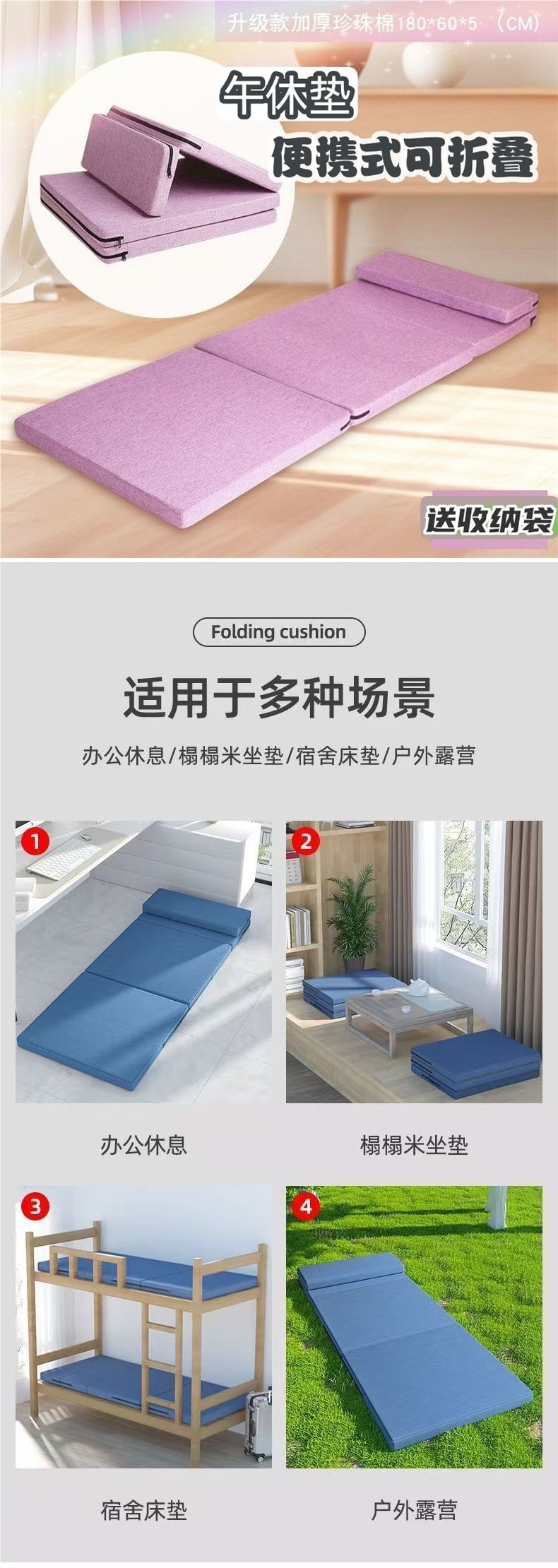 베개가있는 학생 낮잠 패드 두꺼운 학교 낮잠 패드 방습 패드 야외 휴대용 접이식 사무실스토어 가기