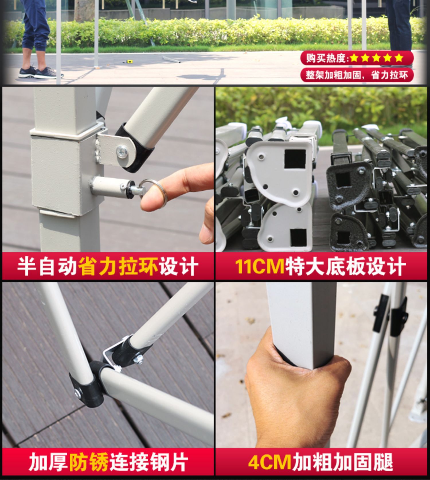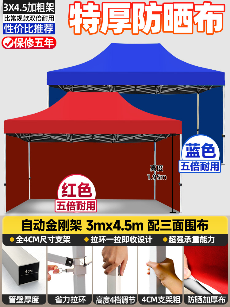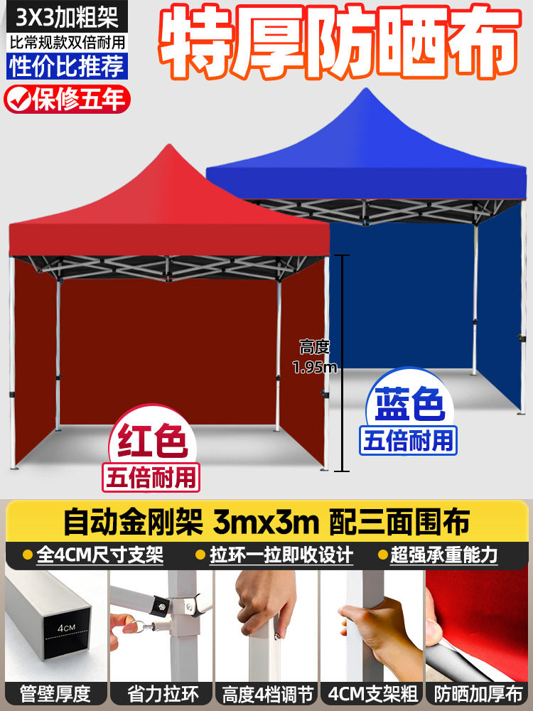 야외 텐트 광고 접이식 접이식 차양 대형 우산 4각 우산 차고 주차장 방수 천막 4각 스톨스토어 가기