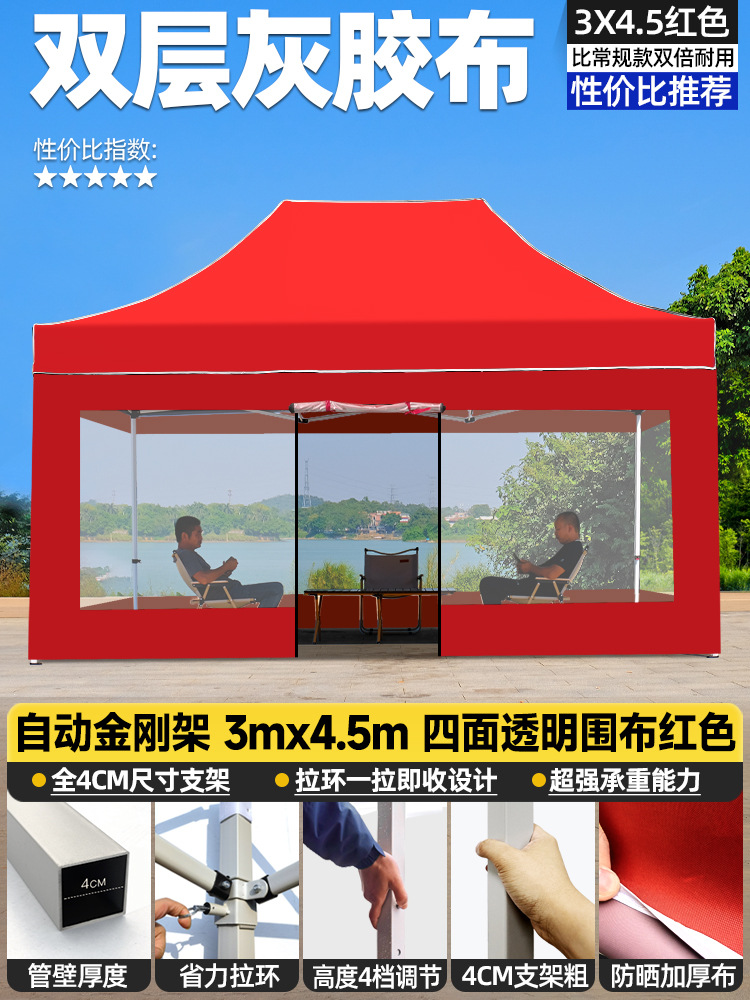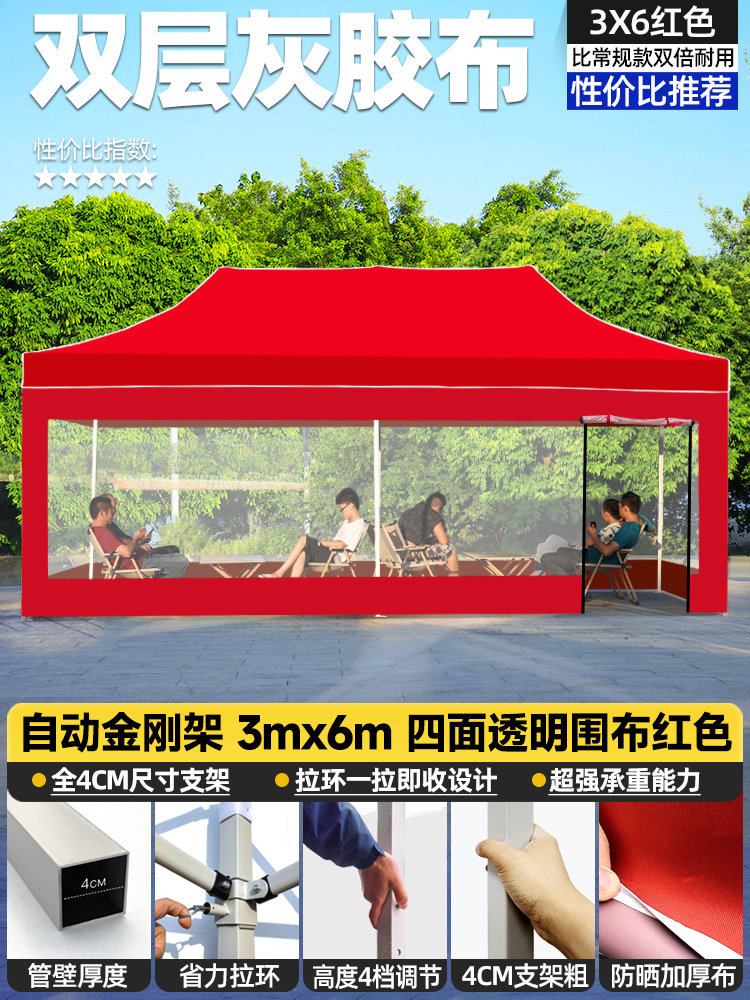 • 3x4.5 자동 거친 프레임 + 모든 측면에 투명 빨간색