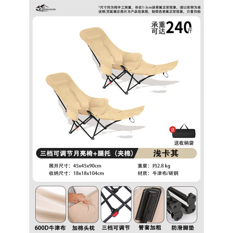 • 앉고 눕기 - 보온성을 위한 면 추가 [면 추가 + 다리 받침대 + 3단 조절 달 의자 - 라이트카키 X2]