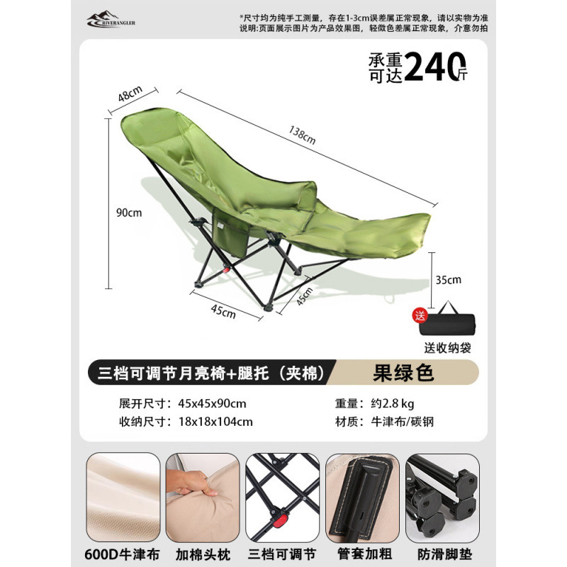 야외 안락 의자 접이식 사무실 점심 휴식 달 의자 3단 조절 등받이 게으른 소파 의자 캠핑 장비스토어 가기