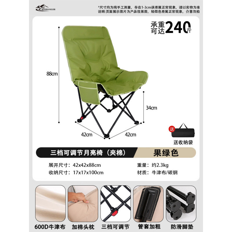 • 앉거나 눕거나 사용 가능 - 면을 추가하여 따뜻하게 유지 [면 추가 + 다리 받침대 포함 + 3단계 조절 가능한 달 의자 - 라이트 카키]