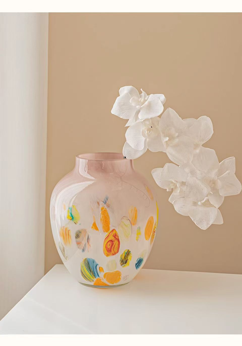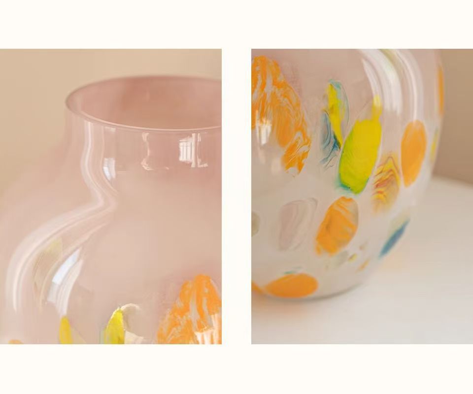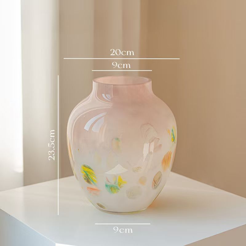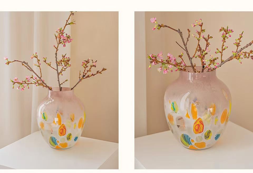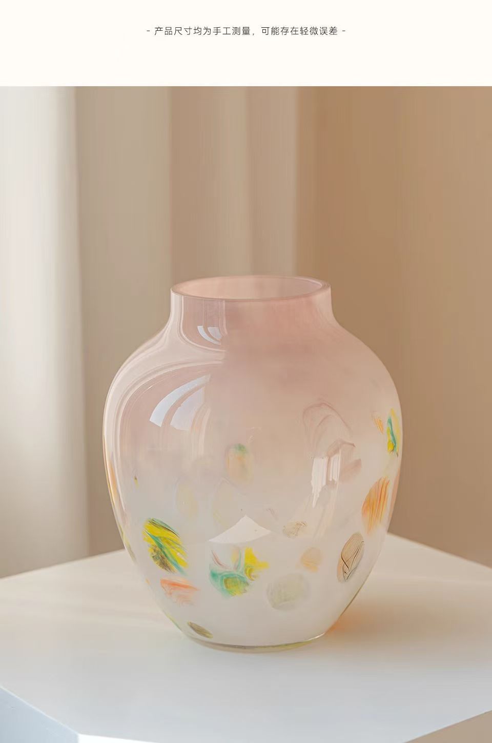 북유럽 인 스타일 핑크 맞춤형 유리 꽃병, 고급스러운 외관, 홈 거실 꽃병, 고급 장식, 고급스러운 외관스토어 가기