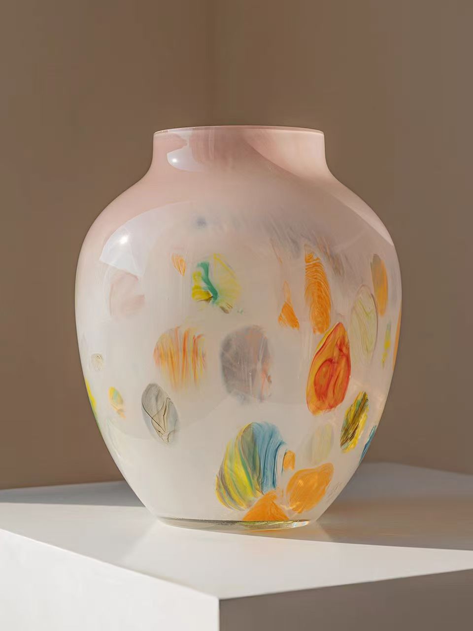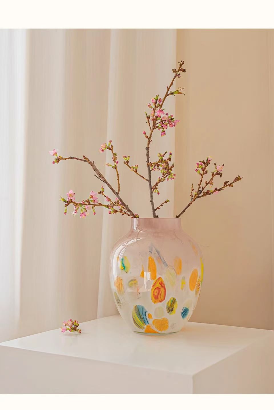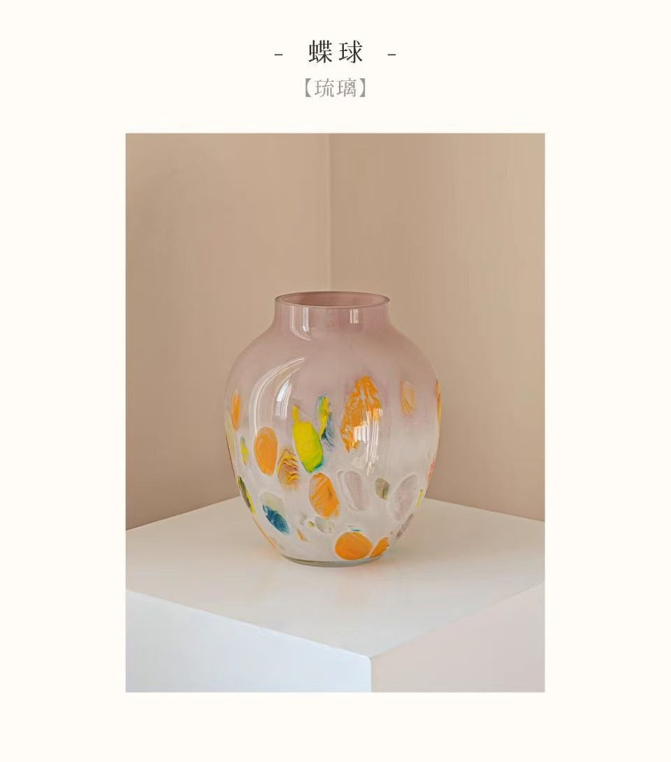 북유럽 인 스타일 핑크 맞춤형 유리 꽃병, 고급스러운 외관, 홈 거실 꽃병, 고급 장식, 고급스러운 외관스토어 가기