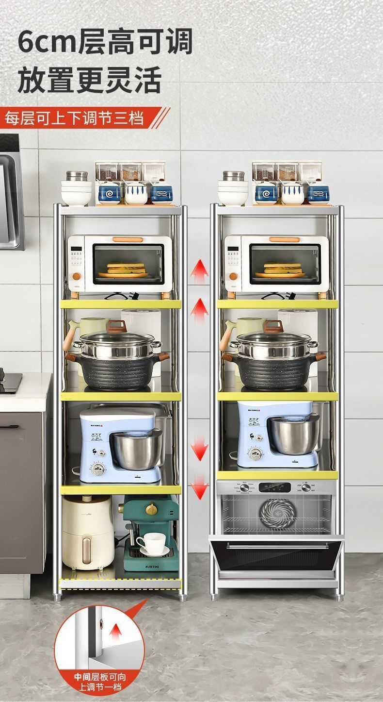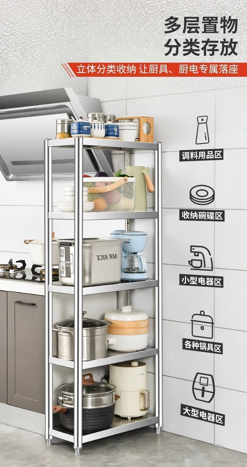 주방 보관 랙 스테인레스 스틸 보관 랙 다층 바닥에서 천장까지 다기능 두꺼운 그릇 랙 가정용 찬장 보관 랙