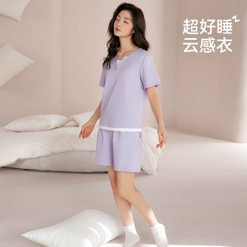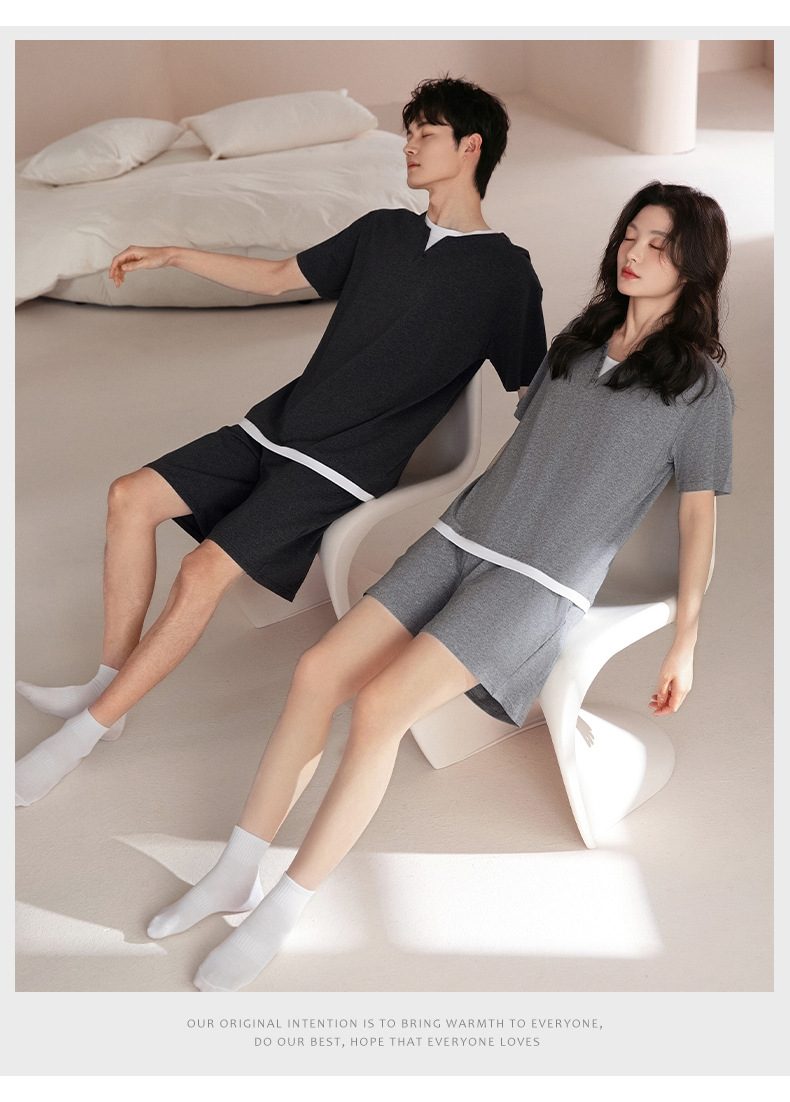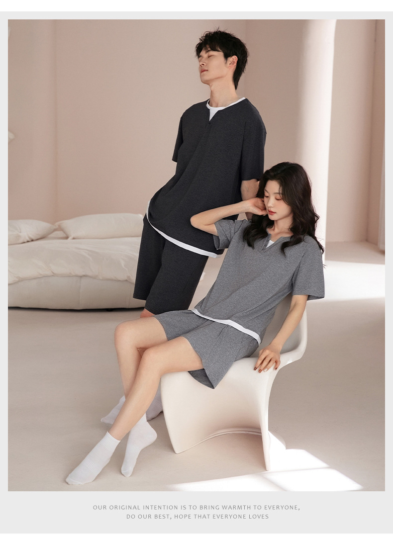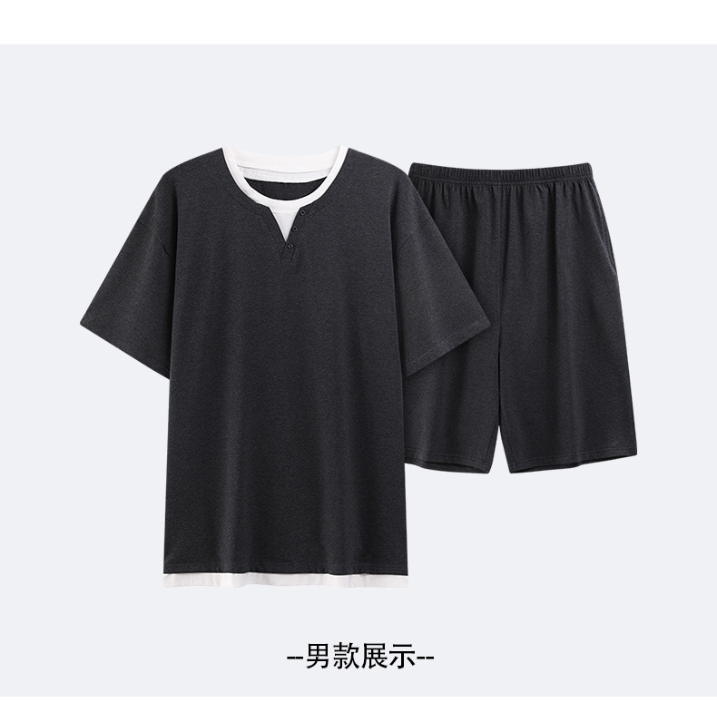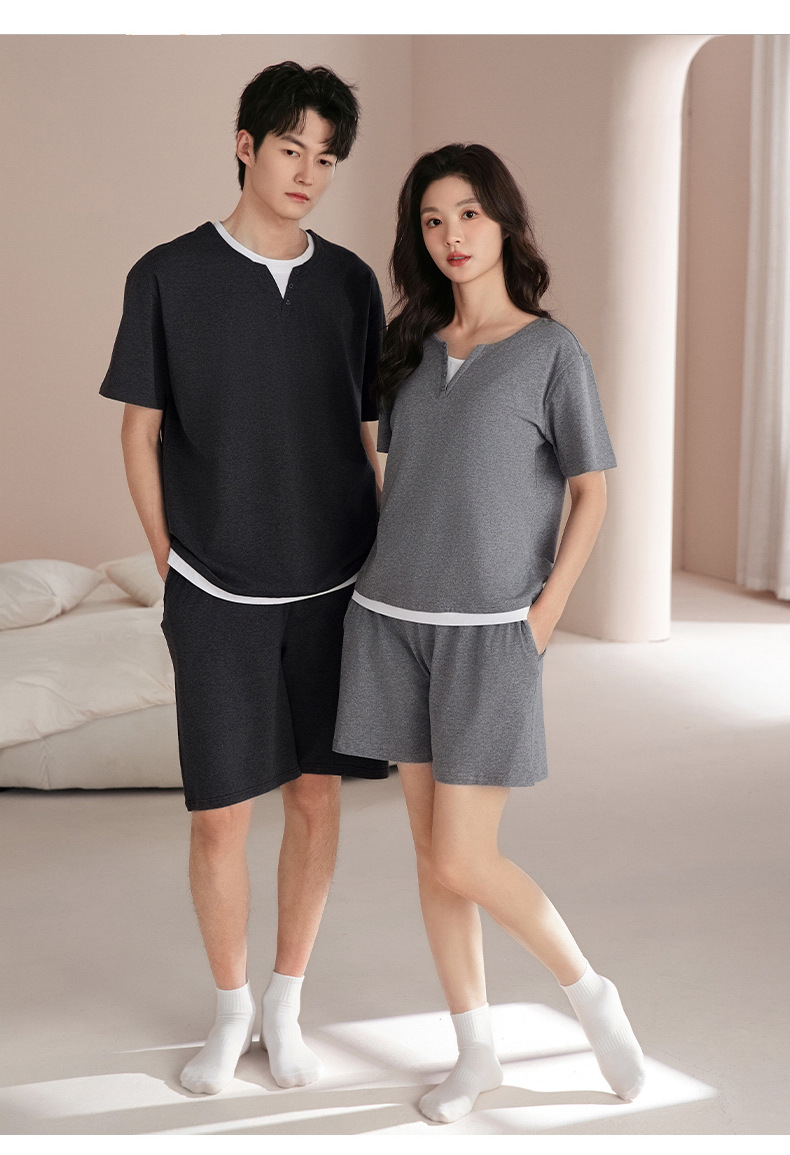 커플 잠옷 여름 순면 얇은 반팔 반바지 2025 심플 웨어러블 남성과 여성의 홈웨어 세트