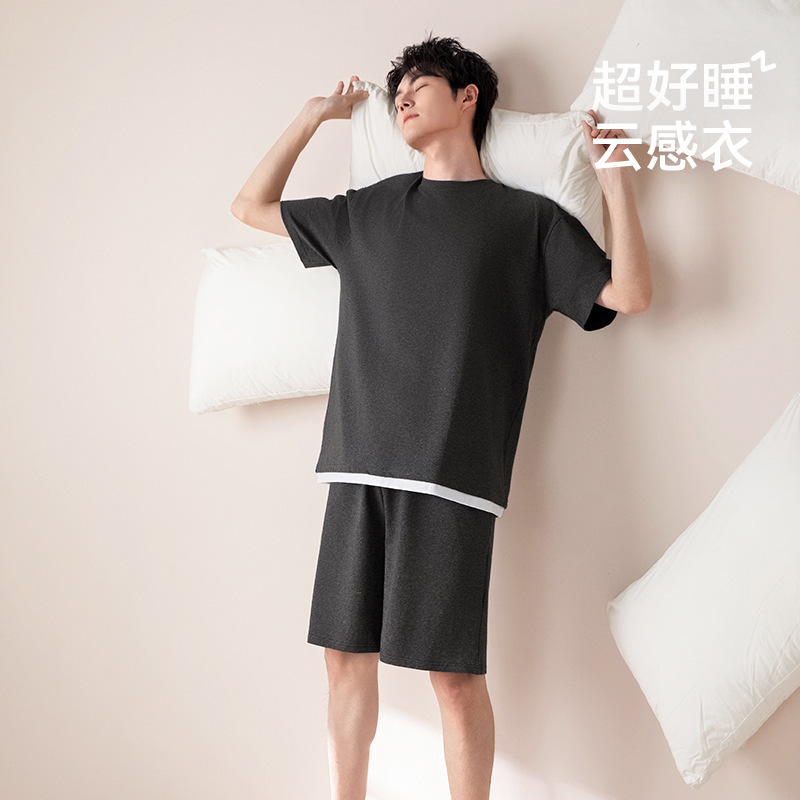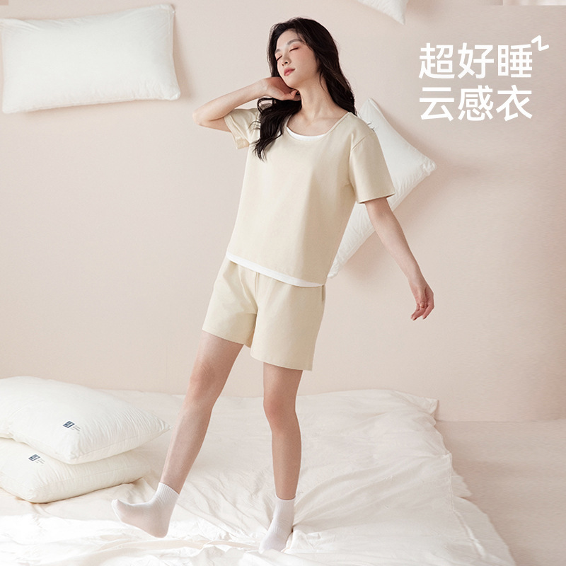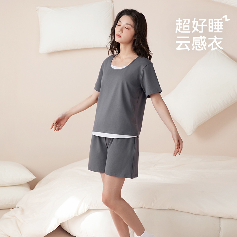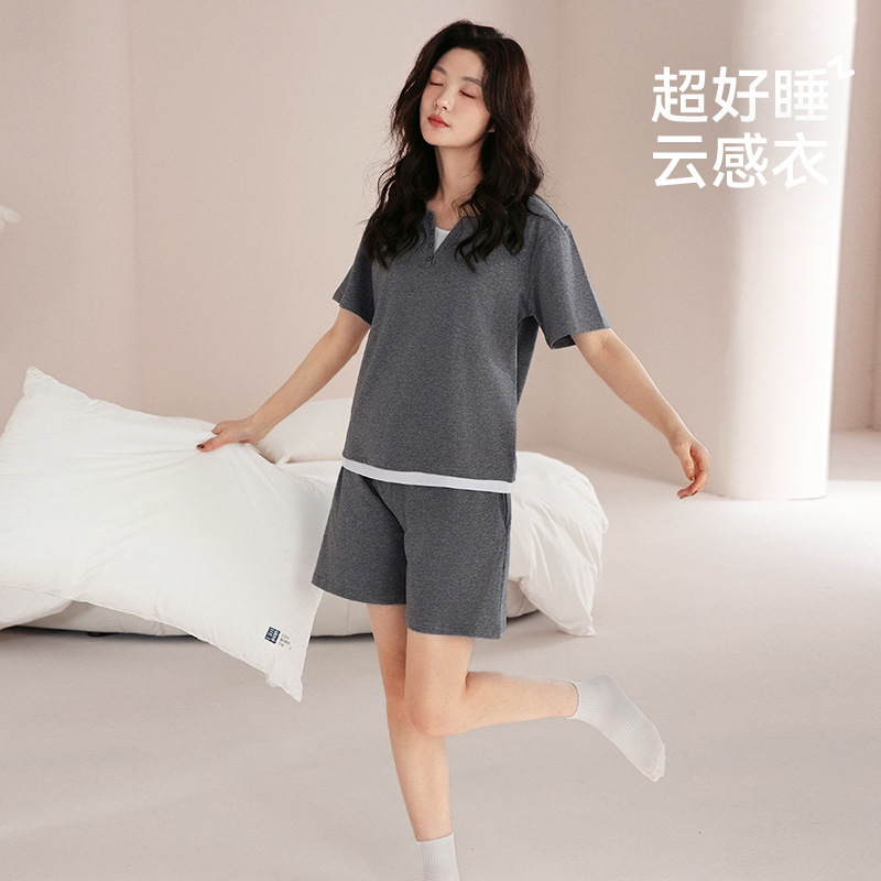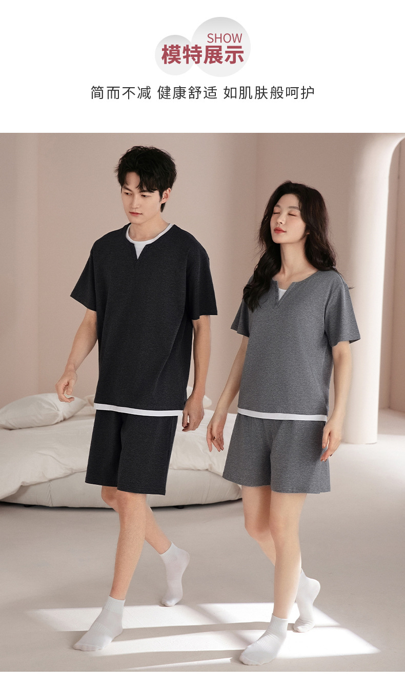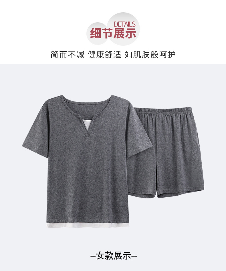 커플 잠옷 여름 순면 얇은 반팔 반바지 2025 심플 웨어러블 남성과 여성의 홈웨어 세트스토어 가기