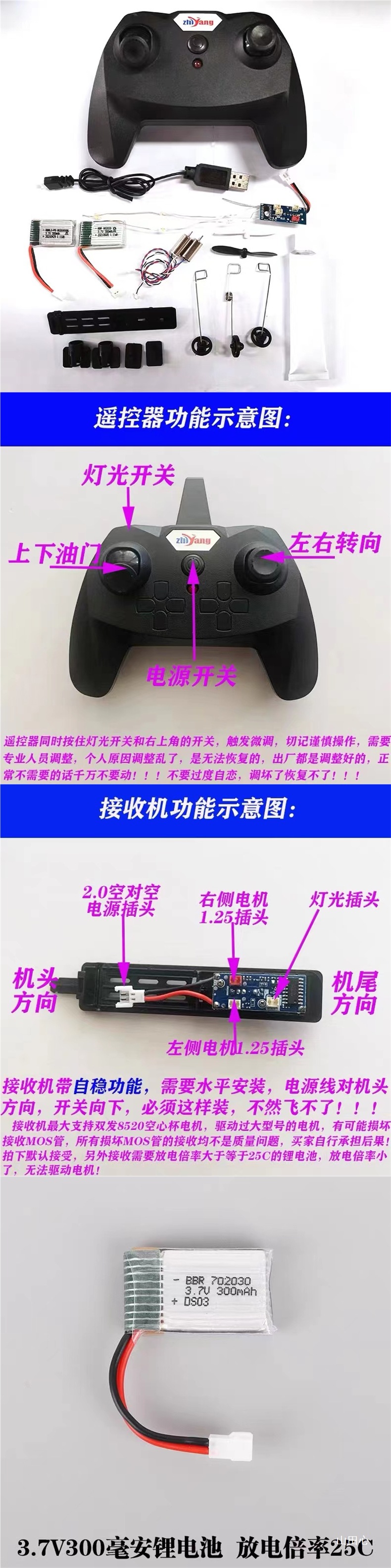 ZY530 차동 항공기 모델 손으로 던지는 기계 수정 된 2 채널 항공기 원격 제어 수신기 DIY 생산 액세서리