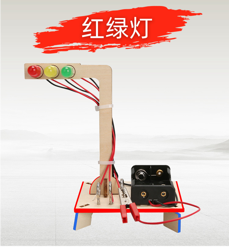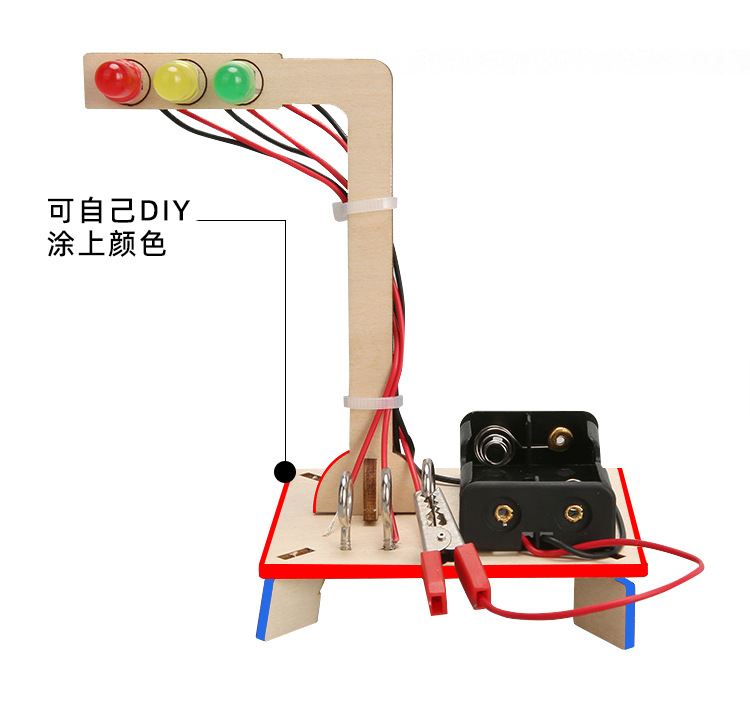 과학 기술 소규모 생산 신호등 나무 DIY 유치원 학생 수제 장난감 재료 과학 실험 장난감