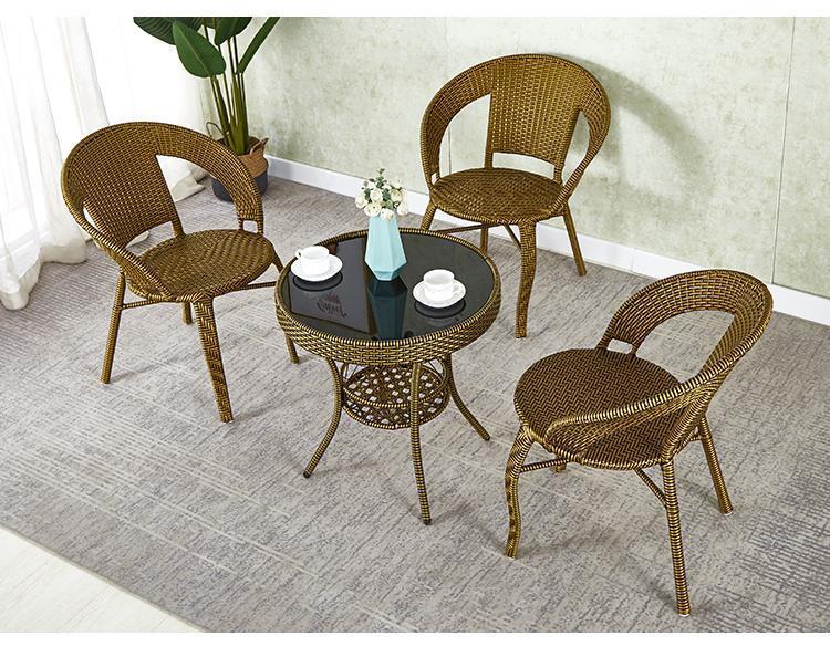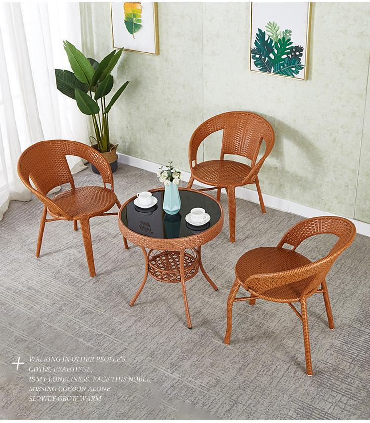 가정용 작은 아파트를 위한 간단한 발코니 작은 티 테이블 거실 등나무 작은 티 테이블 테이블과 의자 조합 유리 원형스토어 가기