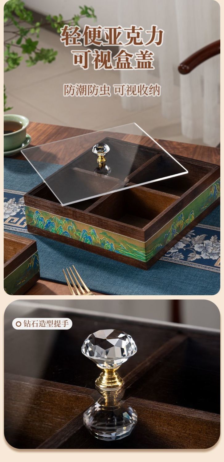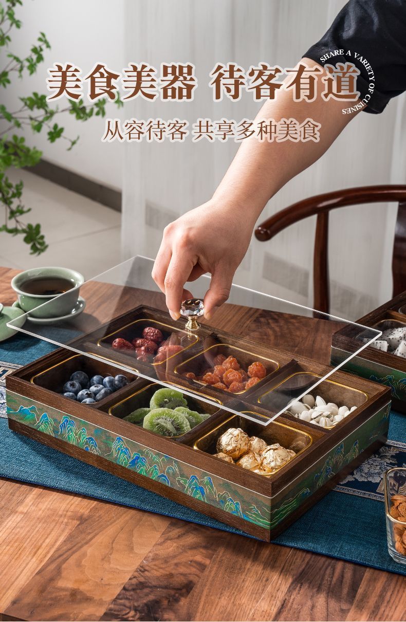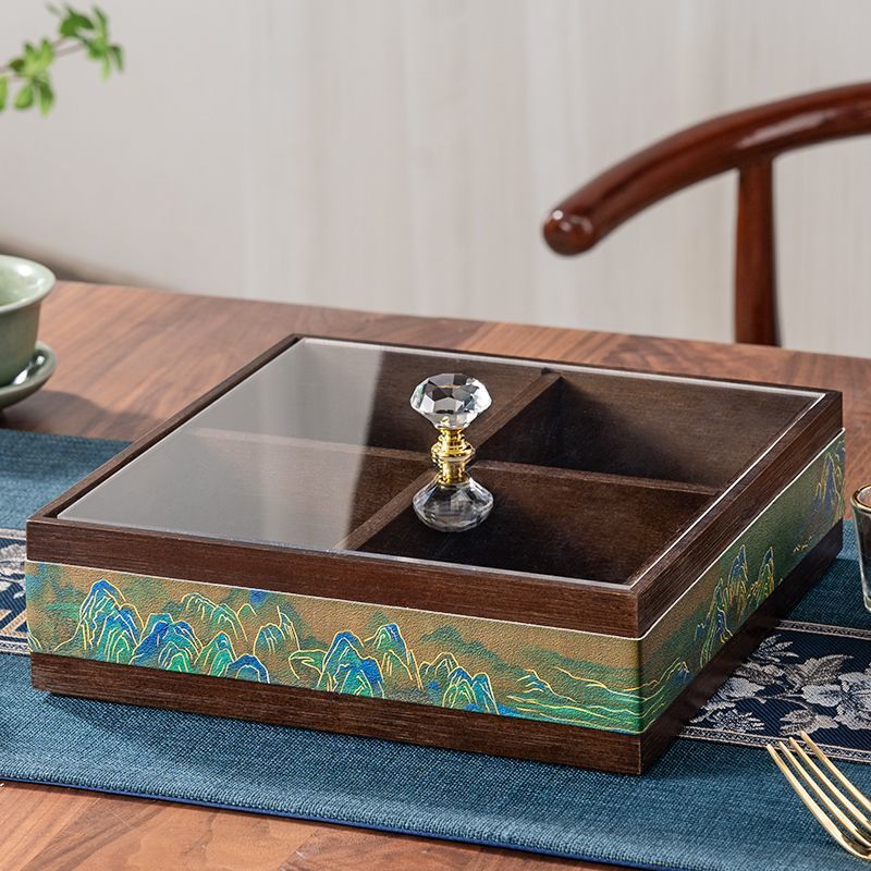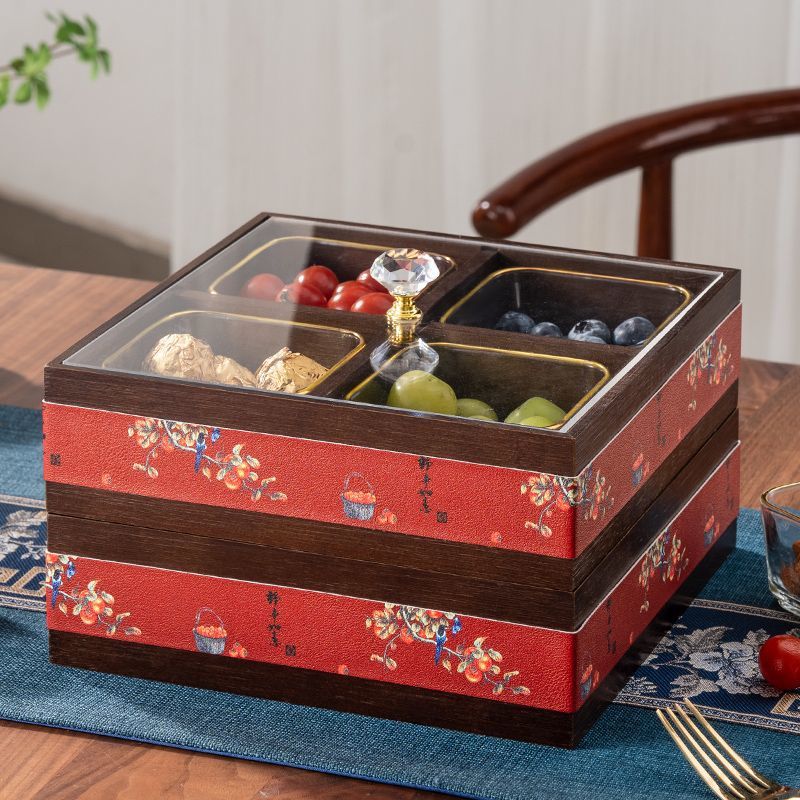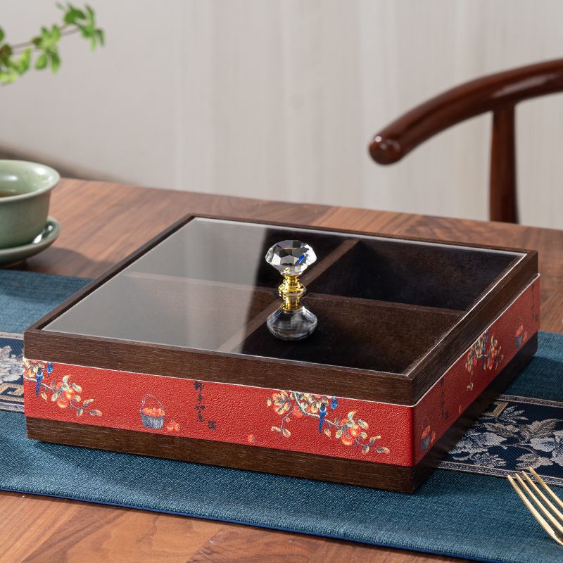 라이트 럭셔리 새로운 중국 스타일의 말린 과일 상자 2025 새로운 홈 거실 커피 테이블 단단한 나무 보관함 견과류 스낵 트레이
