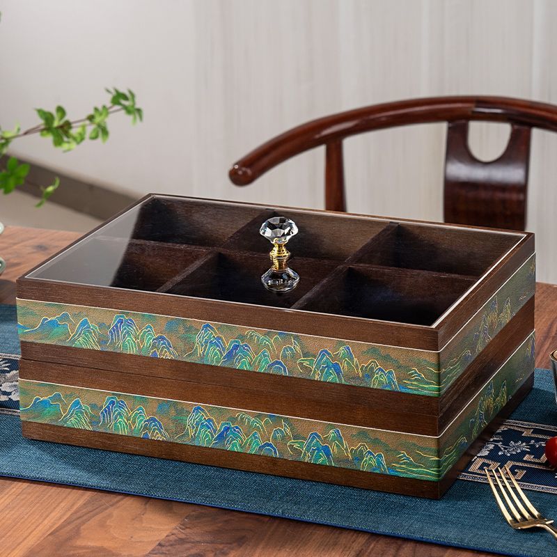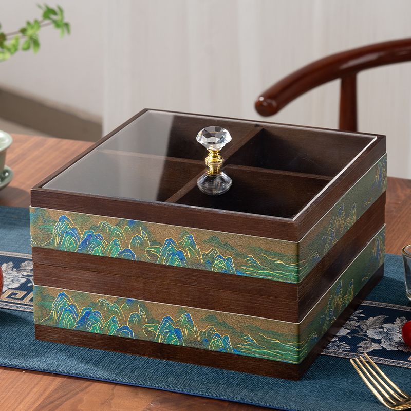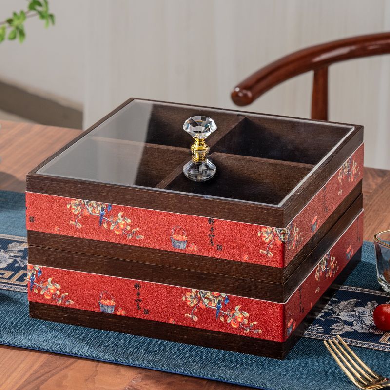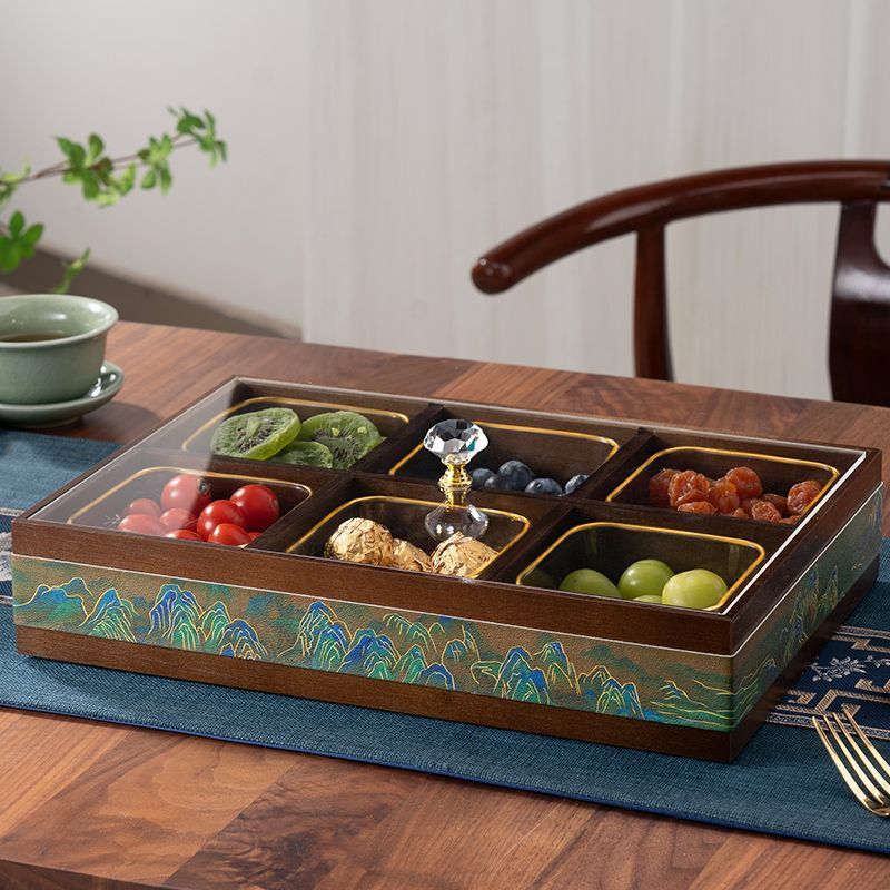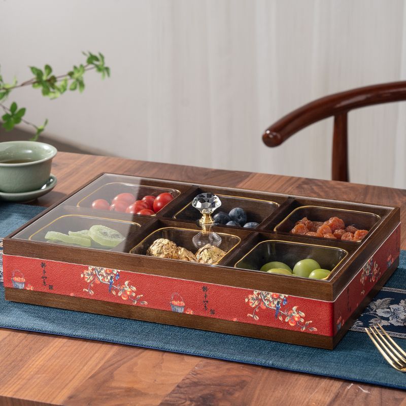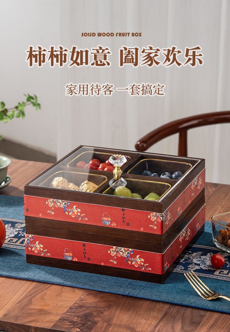라이트 럭셔리 새로운 중국 스타일의 말린 과일 상자 2025 새로운 홈 거실 커피 테이블 단단한 나무 보관함 견과류 스낵 트레이