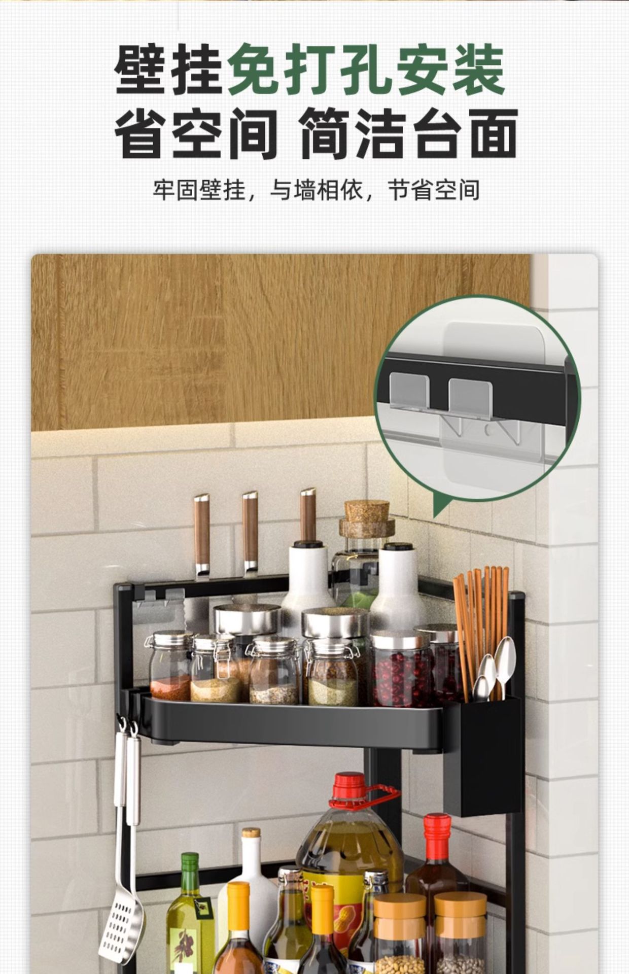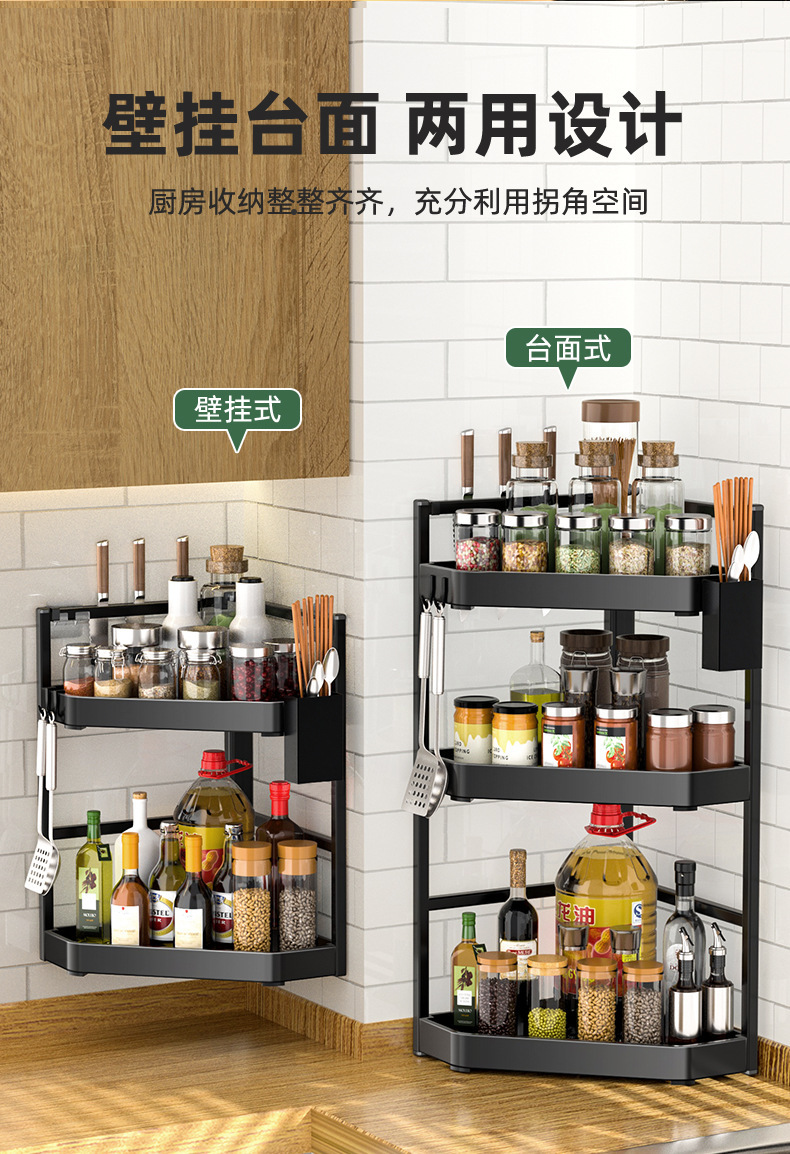 주방 수납 선반, 조리대 코너 삼각형 조미료 걸이, 벽 코너 펜던트, 코너 수납, 벽걸이형 펀치 프리 선반