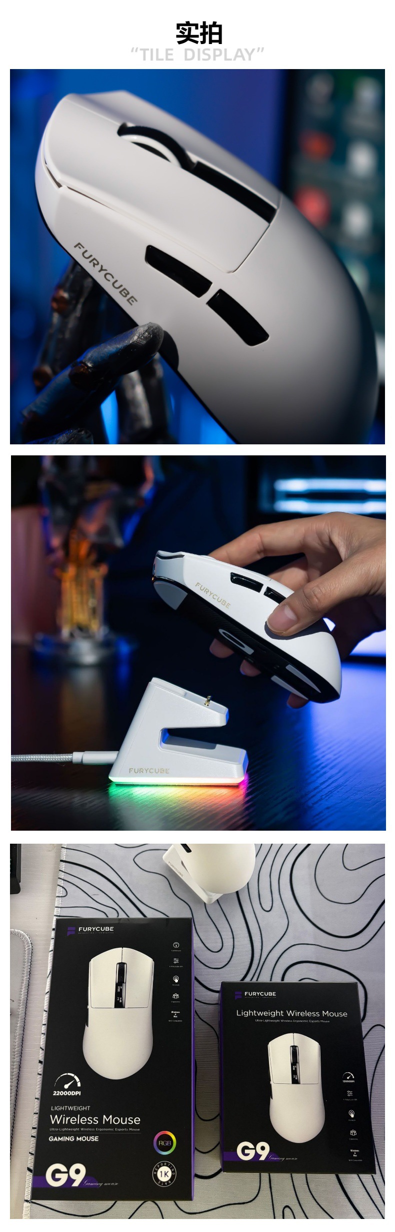 FURYCUBE G9 마우스 경량 PAW3311 e-스포츠 게임 3모드 무선 Bluetooth 마우스 충전 베이스