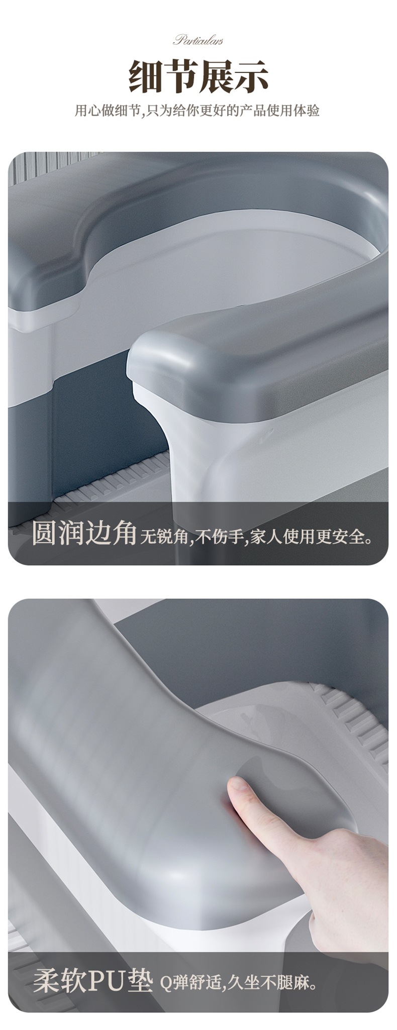 • ✓두껍고 안정적인✓쪼그려 앉는 변기 PP 하드 쿠션 [회색 + 높은 발] - 이중 목적 변기/목욕 의자✓