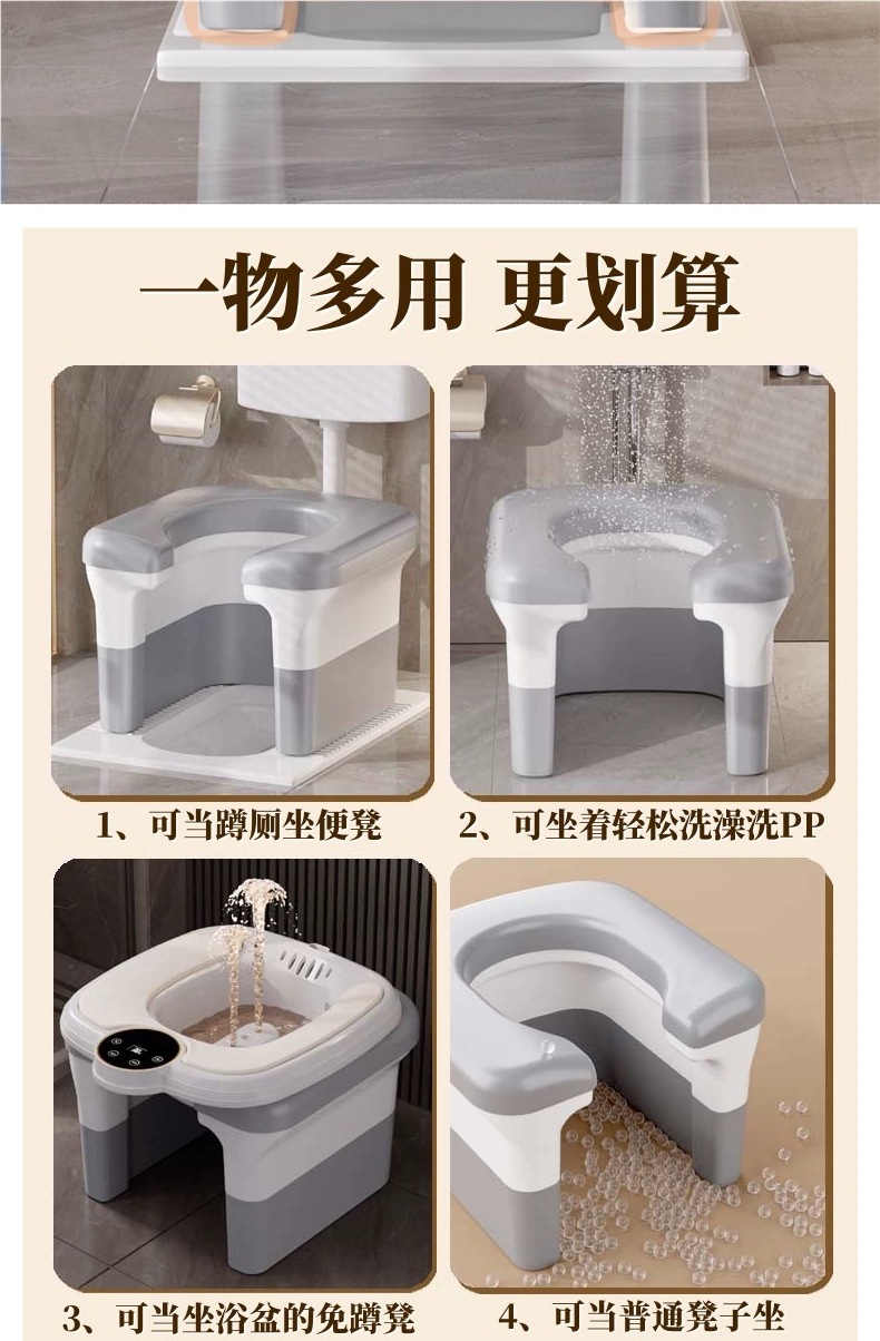 • ✓두껍고 안정적인✓쪼그려 앉는 변기 PP 하드 쿠션 모델 [커피 색상 + 높은 발] - 이중 목적 변기/목욕 의자✓