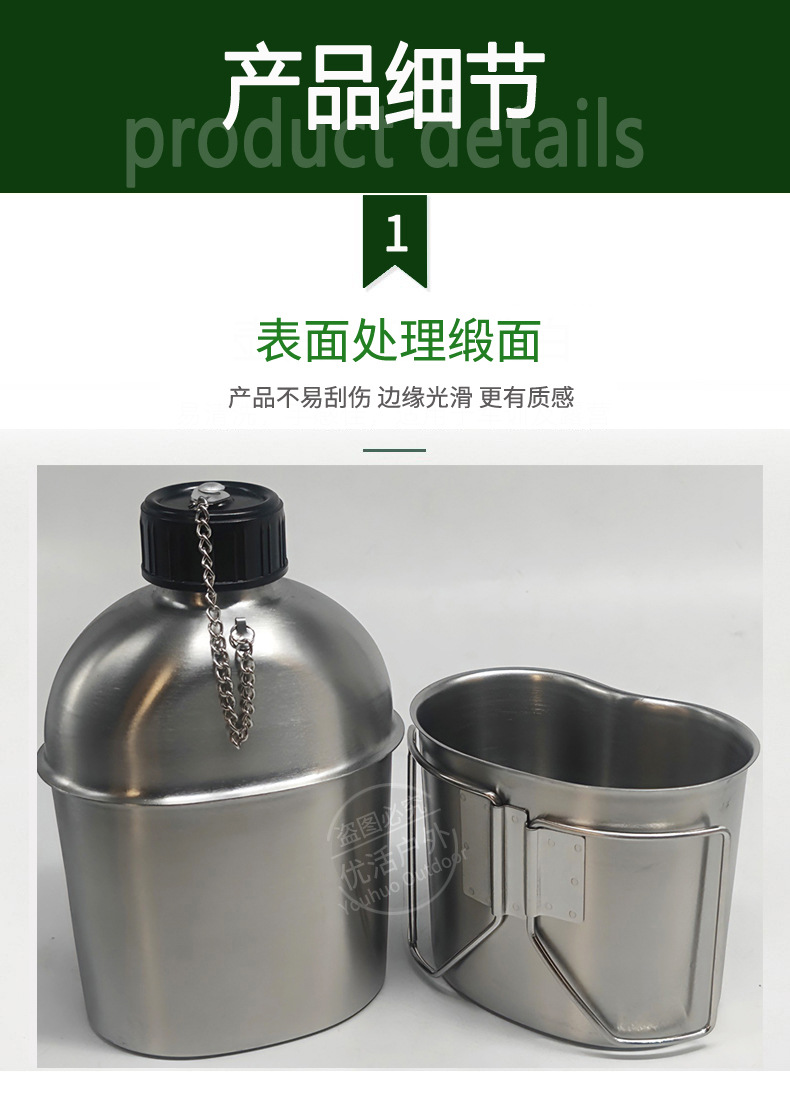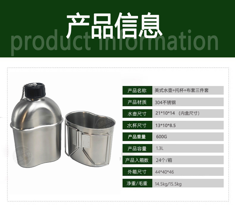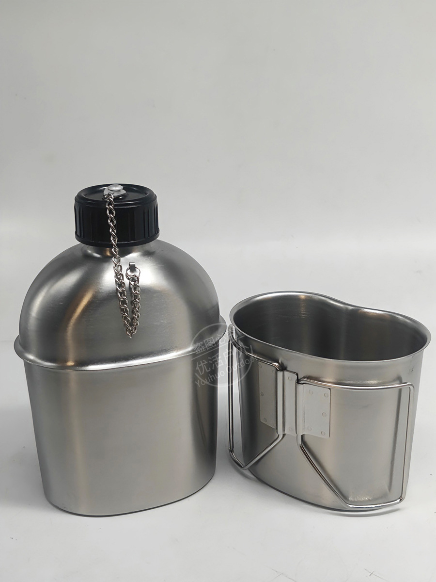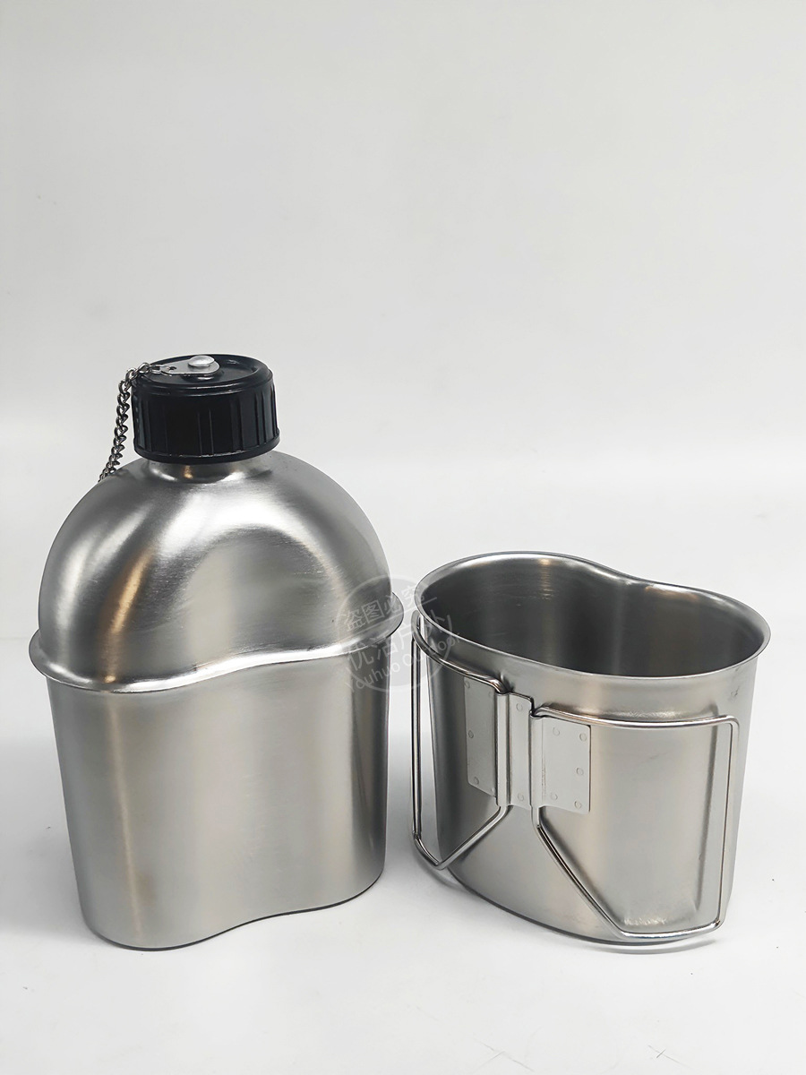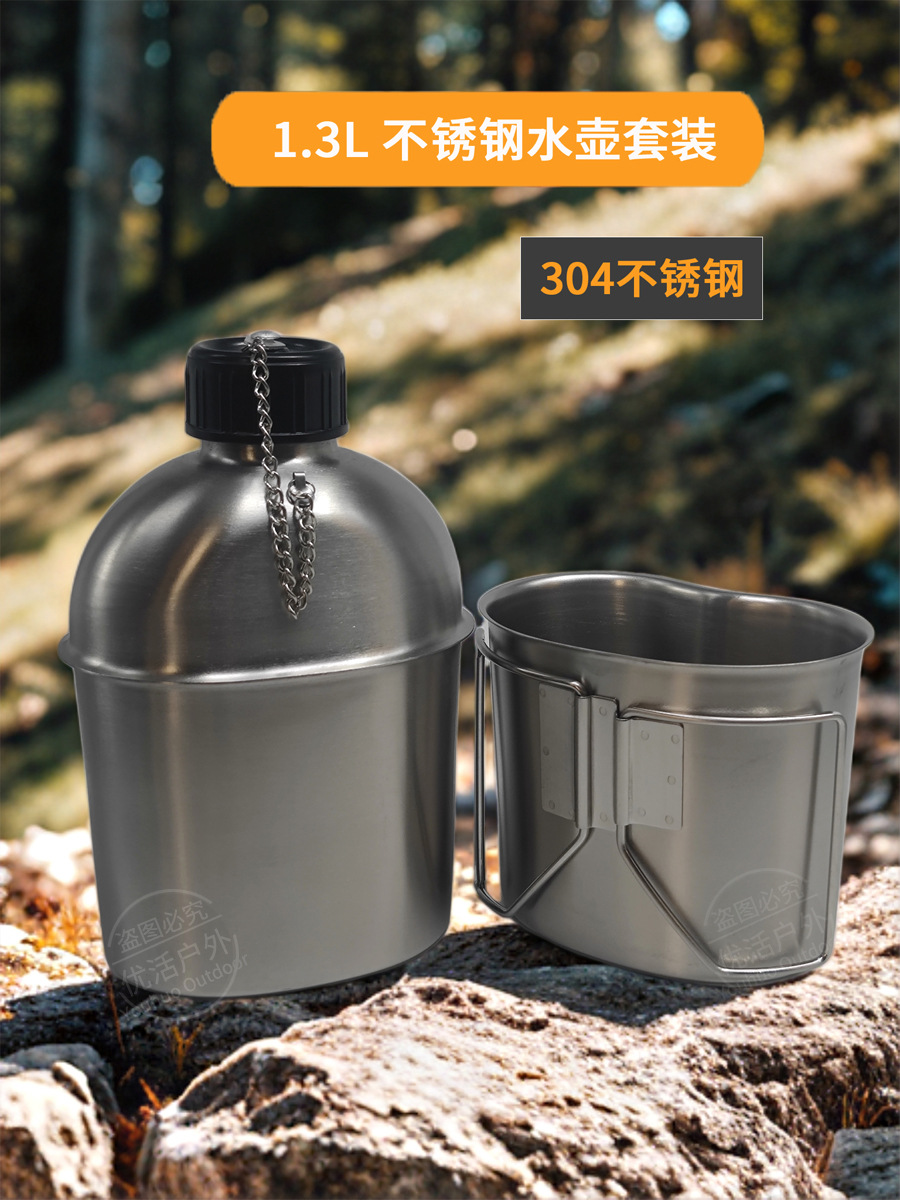 군사 팬 전술 물병 1.3L 미국 복고풍 304 스테인레스 스틸 물병 세트 컵 홀더 휴대용 접이식 3 피스 세트스토어 가기