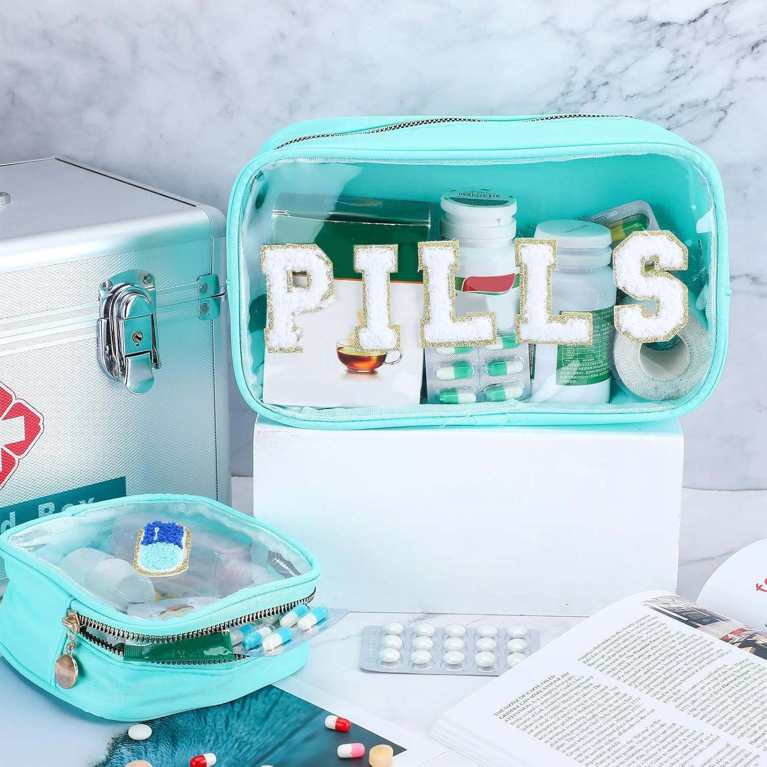아마존 국경 간 PVC 투명 문자 화장품 가방 대용량 저장 가방 응급 처치 약 가방 여행 세면 용품 가방스토어 가기